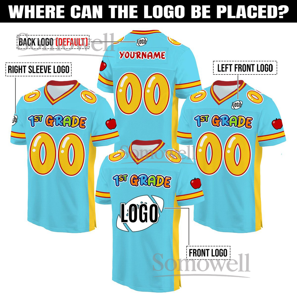 Personalized Back To School Football Jersey 1st Grade Design Custom Name and Number Edition for Kids