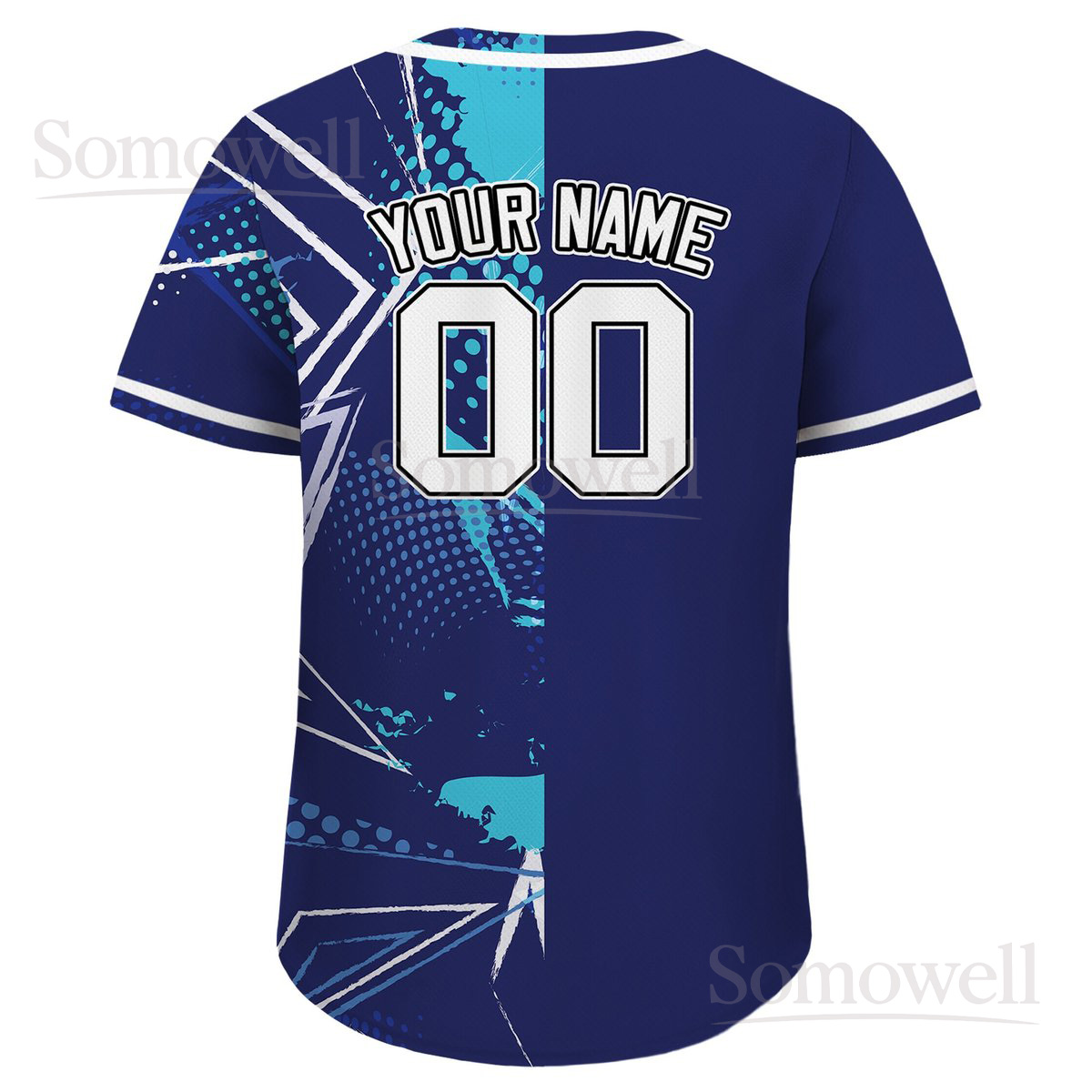 Personalized Baseball Jersey with Team Name and Number Blue Graffiti Multi-Color Sports Shirt