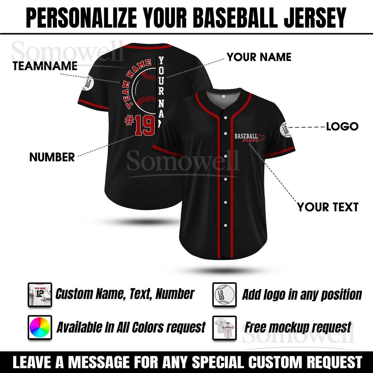 Personalized Baseball Mom Jersey Custom Team Name Number and Heart Design Multi Color Edition