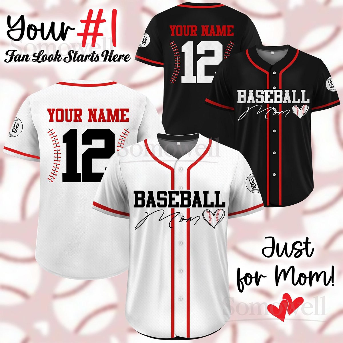 Personalized Baseball Mom Jersey Custom Team Name and Heart Design Multi Color Edition