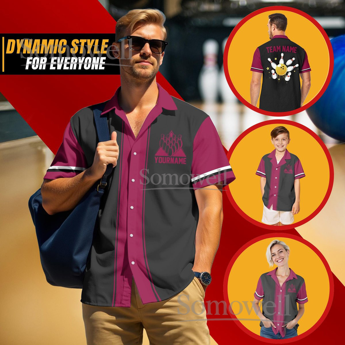 Personalized Bowling Jersey Custom Name Team Logo Hawaiian Style Shirt for Adults and Kids