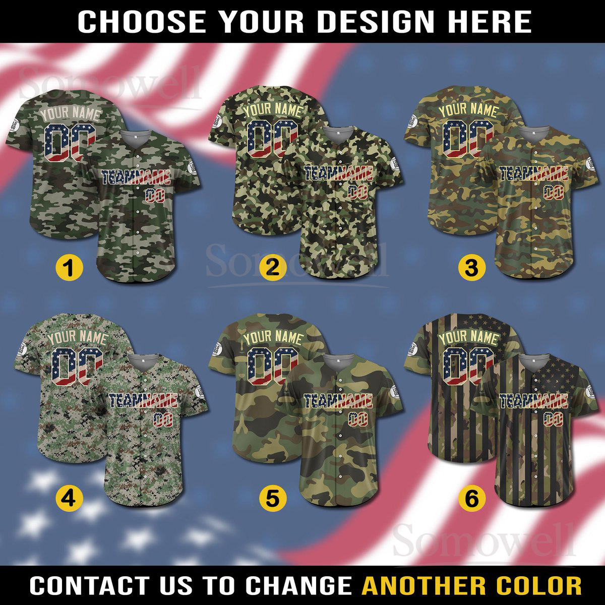 Personalized Camo Baseball Jersey Custom Team Name Number Army Style Sports Uniform Multi Color Edition