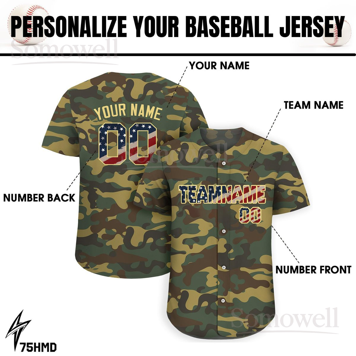 Personalized Camo Baseball Jersey Custom Team Name Number Military Style Sports Shirt Multi Color Edition