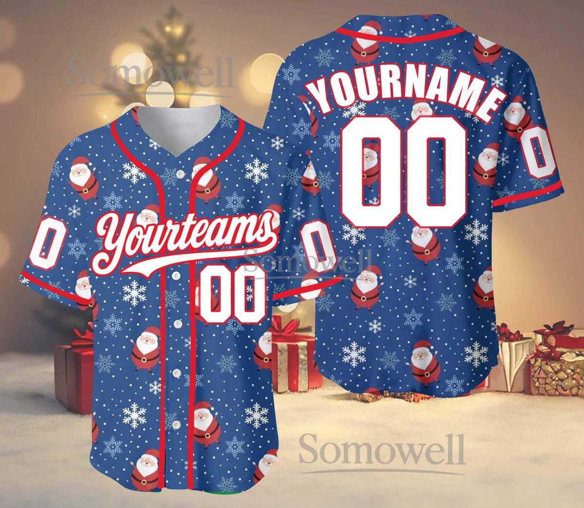 Personalized Christmas Baseball Jersey with Team Name and Custom Name for Holiday Celebration