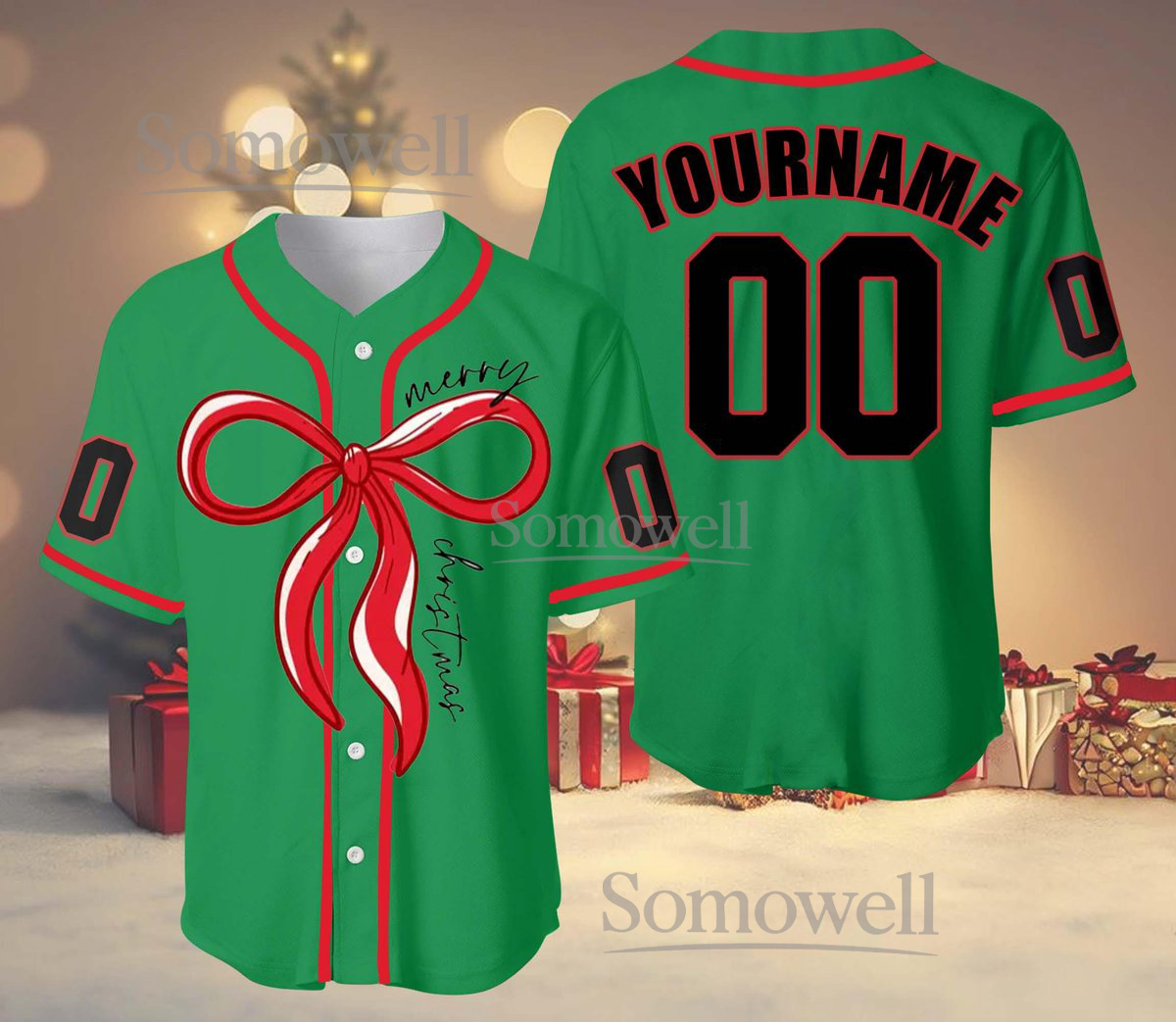 Personalized Christmas Baseball Jersey with Team Name, Number and Custom Name for Christmas Gift