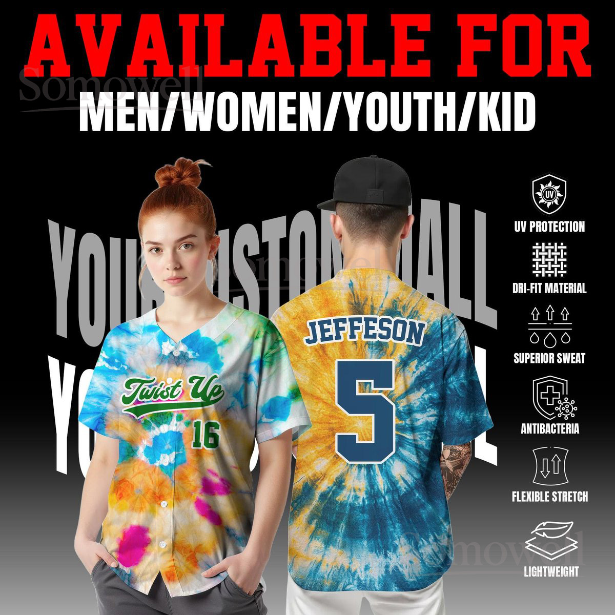 Personalized Colorful Baseball Jersey Custom Team Name and Number for Adults