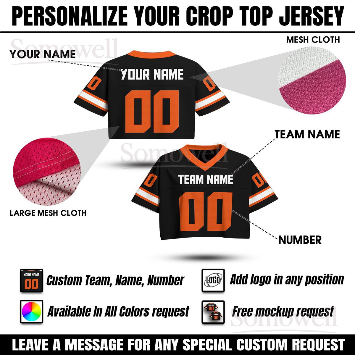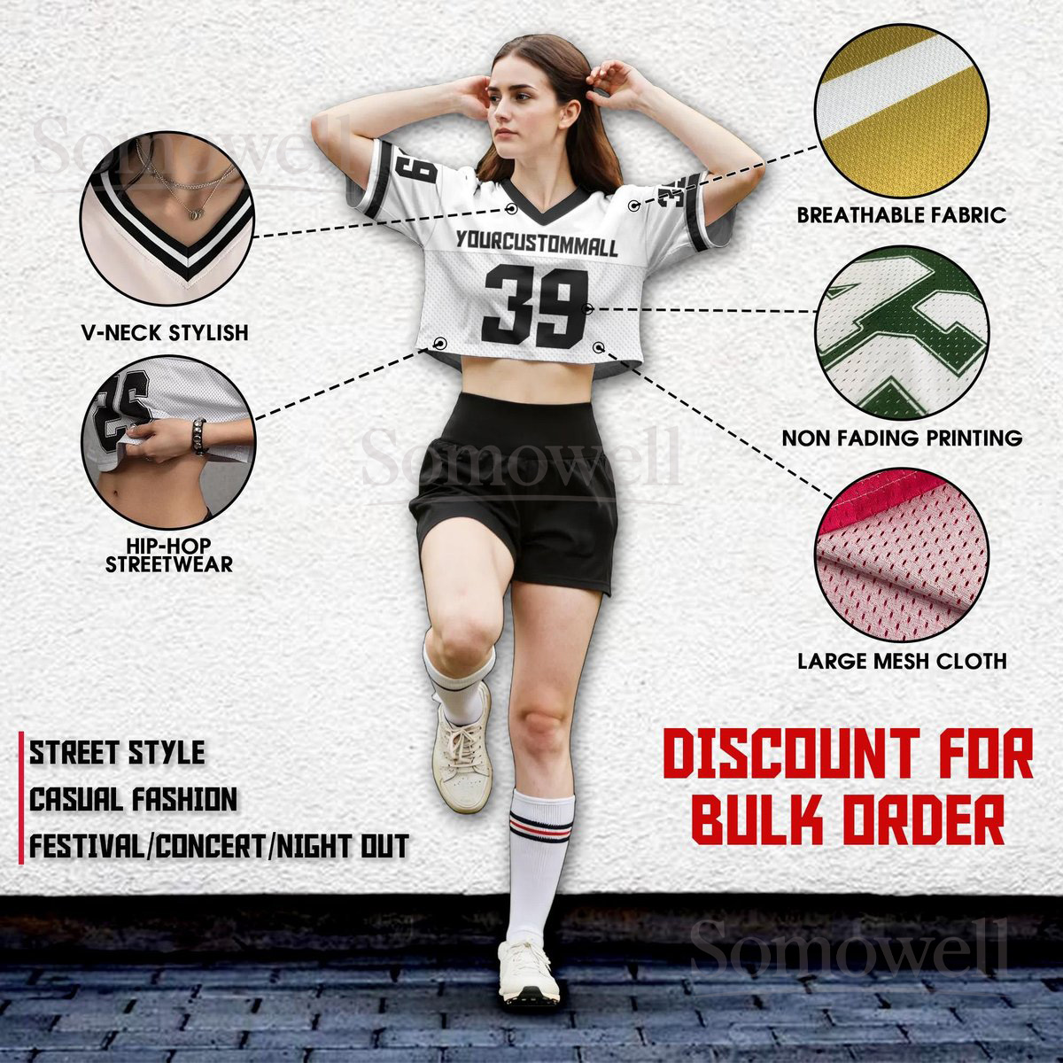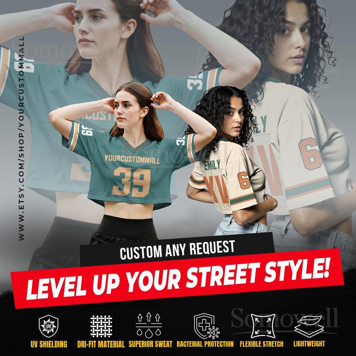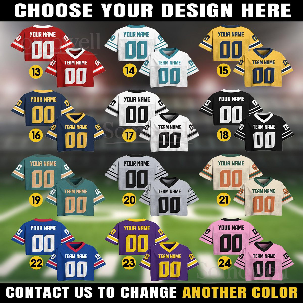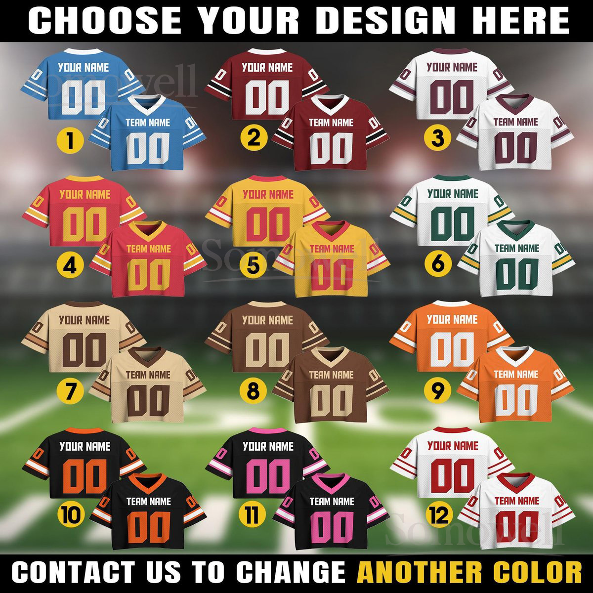 Personalized Crop Football Jersey Custom Team Name Number for Women Stylish Game Day Outfit Multi Color Edition