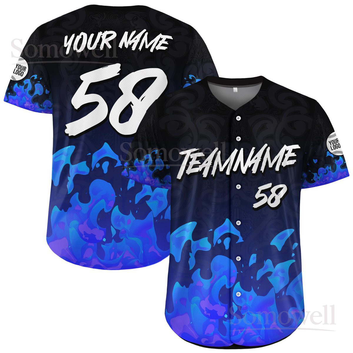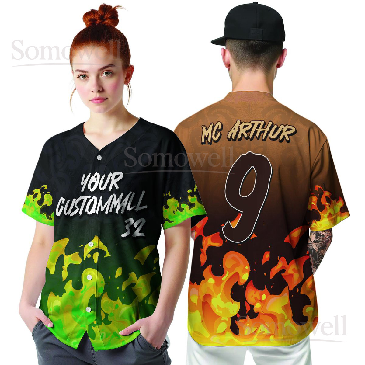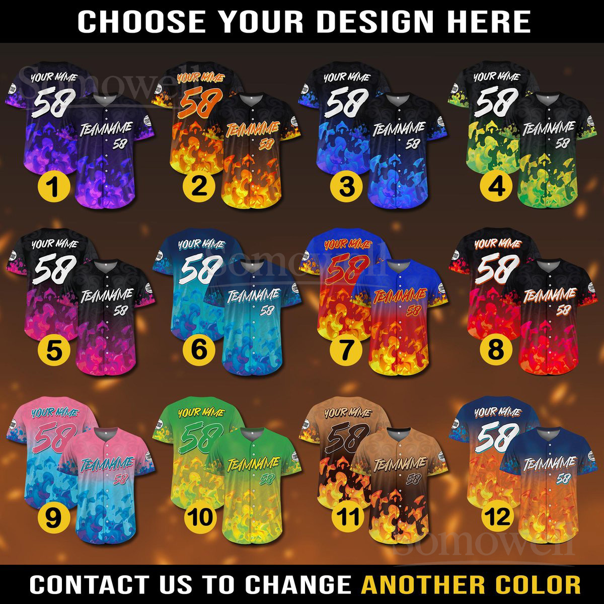 Personalized Flame Baseball Jersey Custom Team Shirt with Name Number Fire Print Softball Uniform Multi Color Edition
