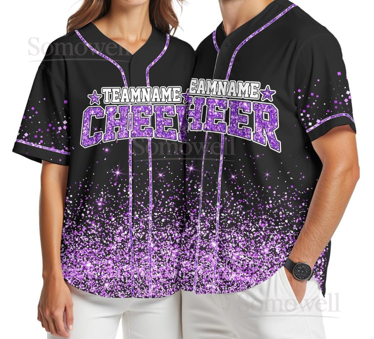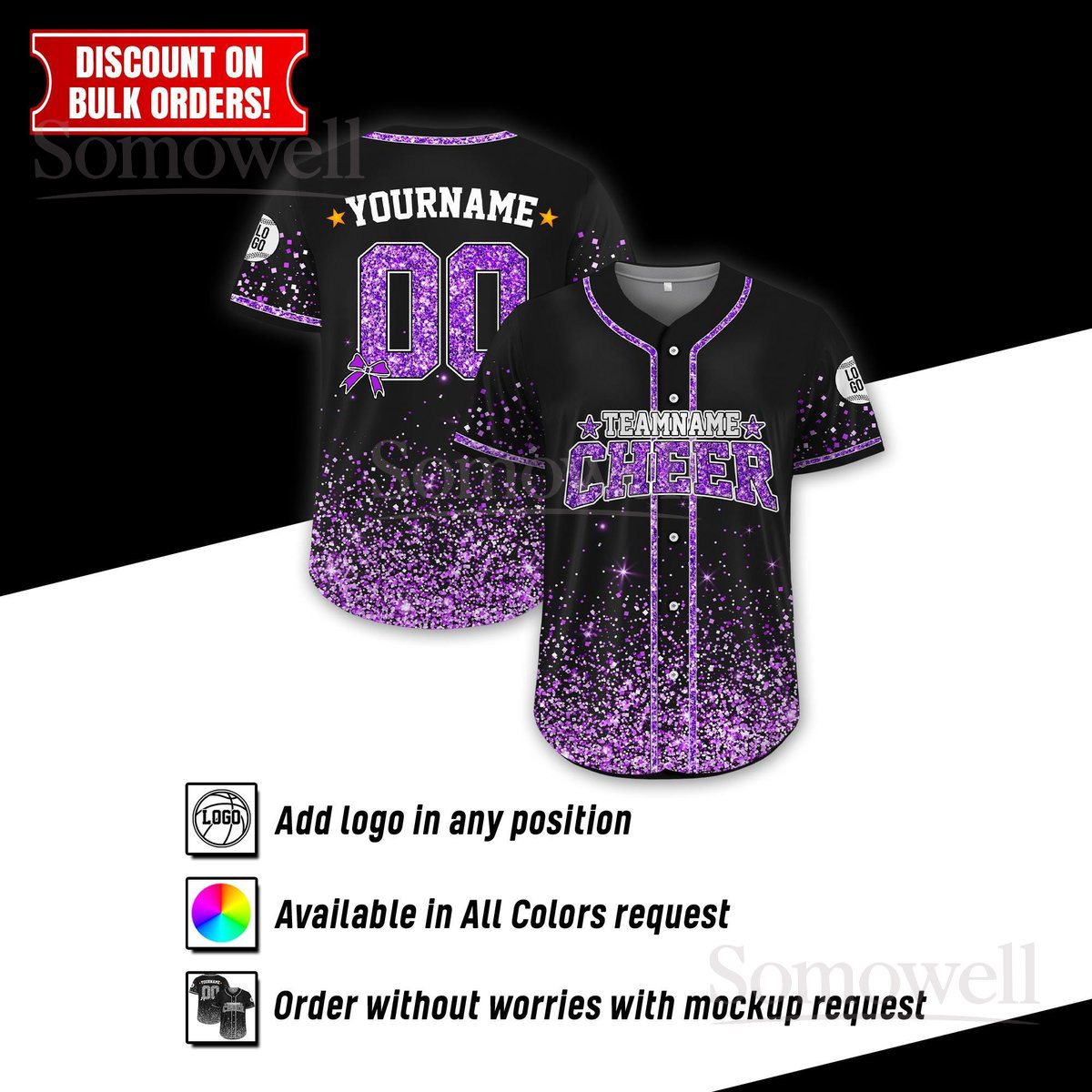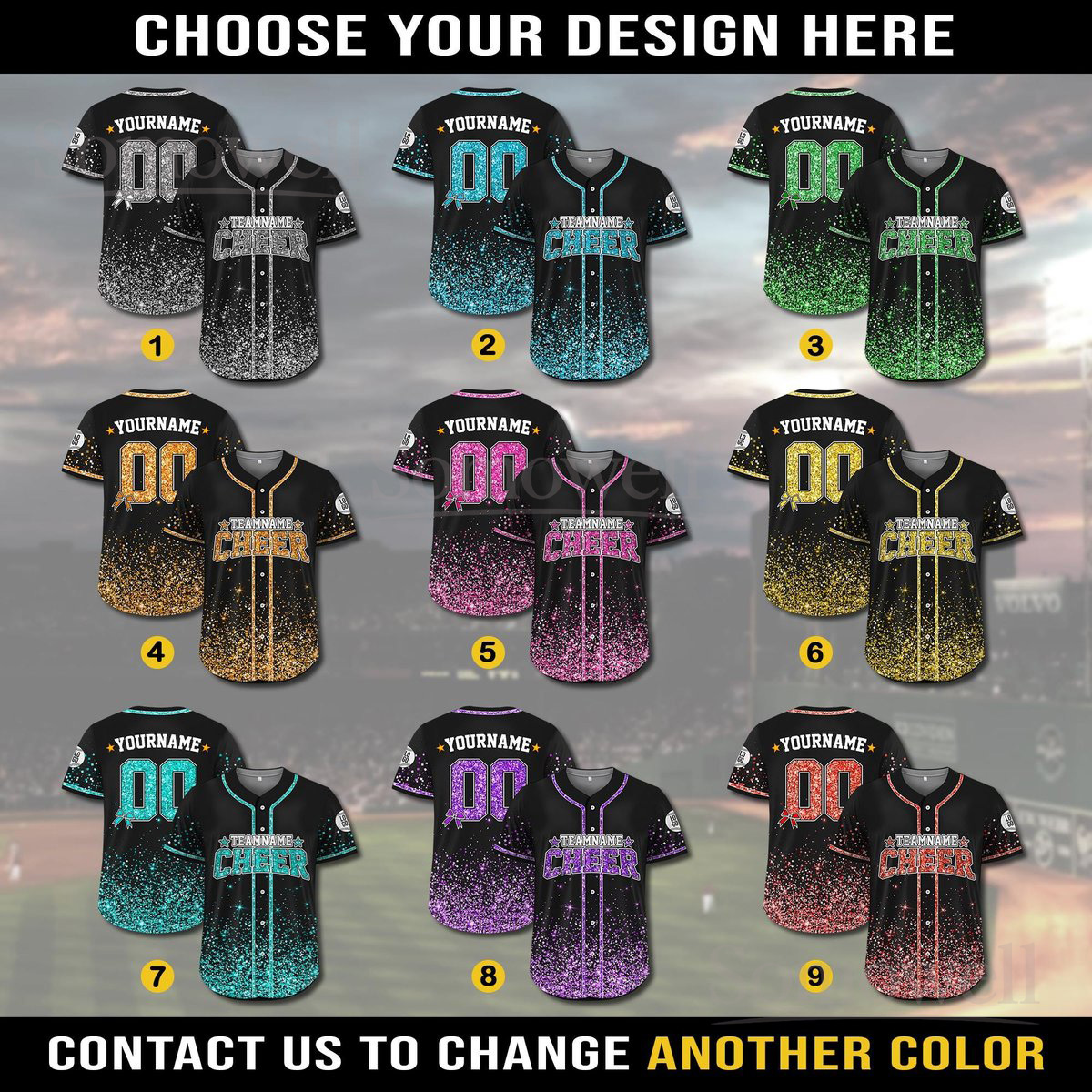 Personalized Glitter Baseball Jersey with Team Name and Number for Adults and Kids Customizable Design