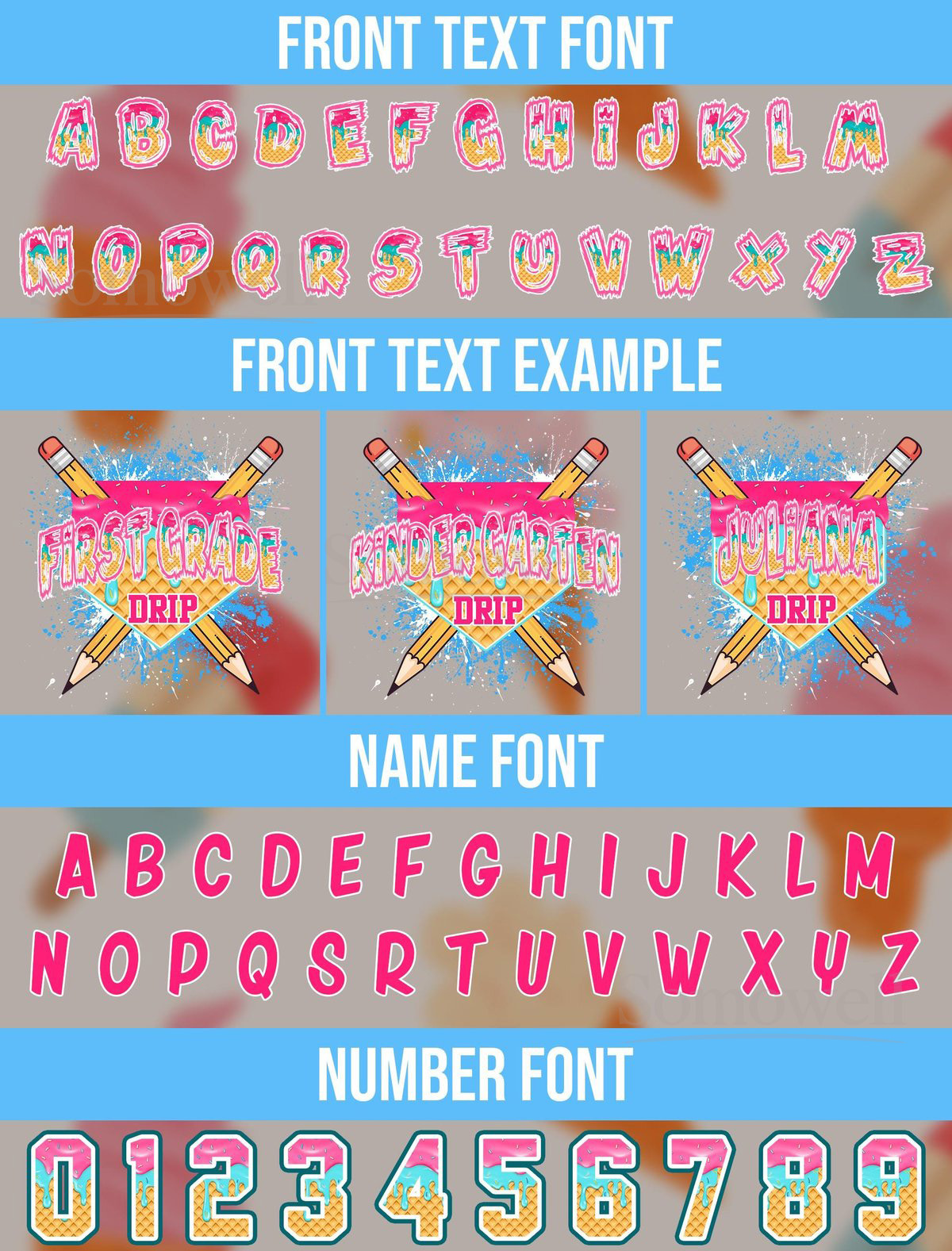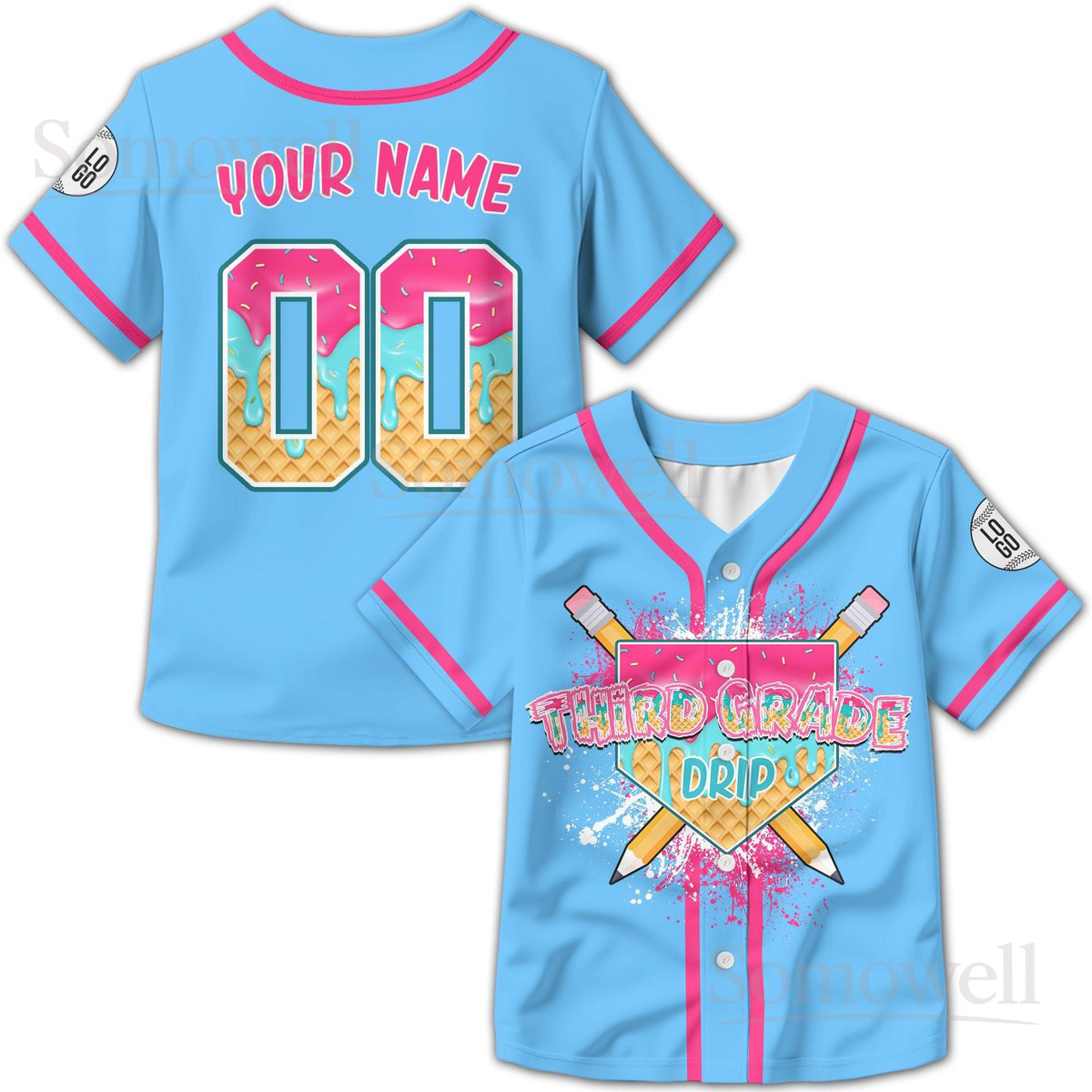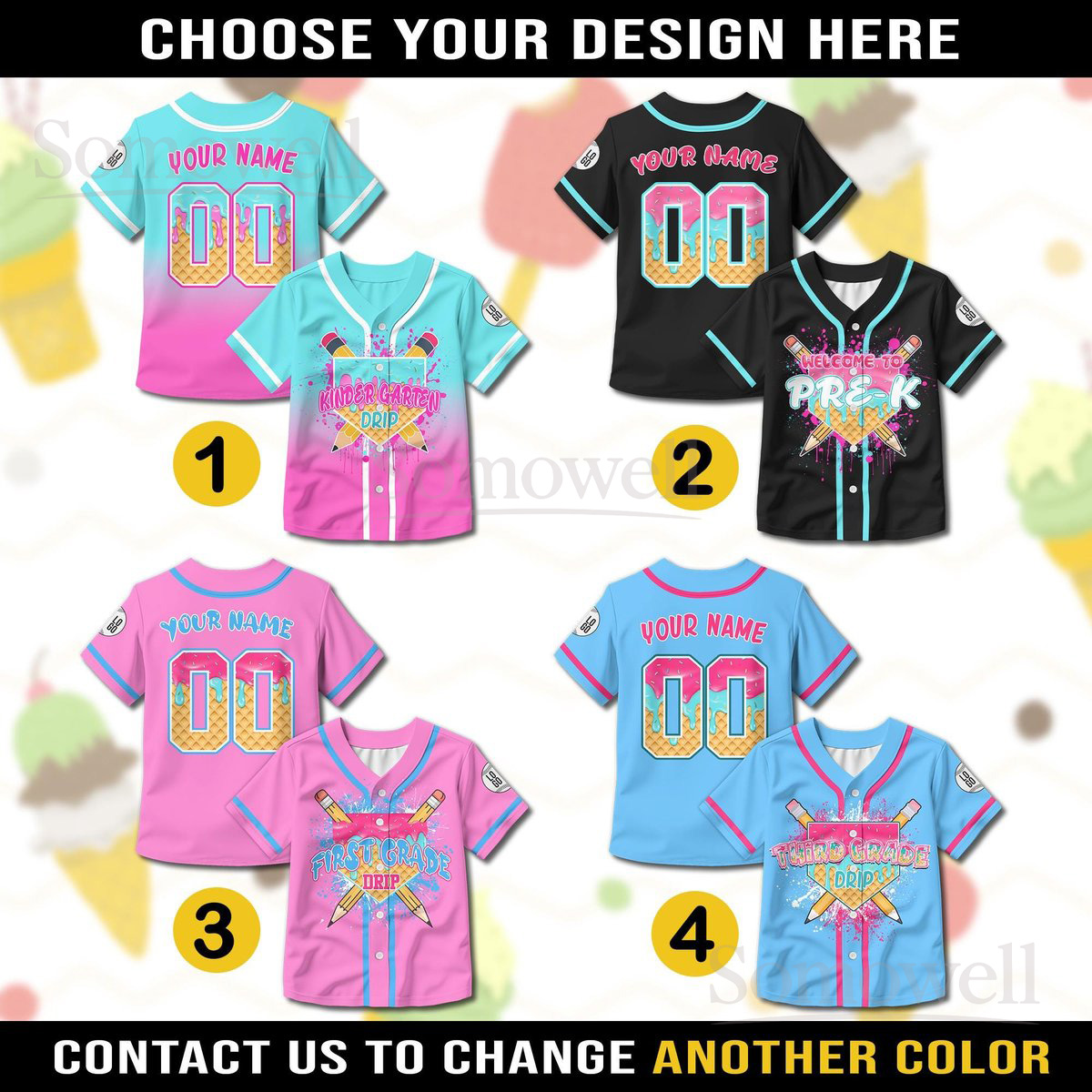 Personalized Ice Cream Drip Baseball Jersey Back to School Edition Custom Name and Grade for Kids
