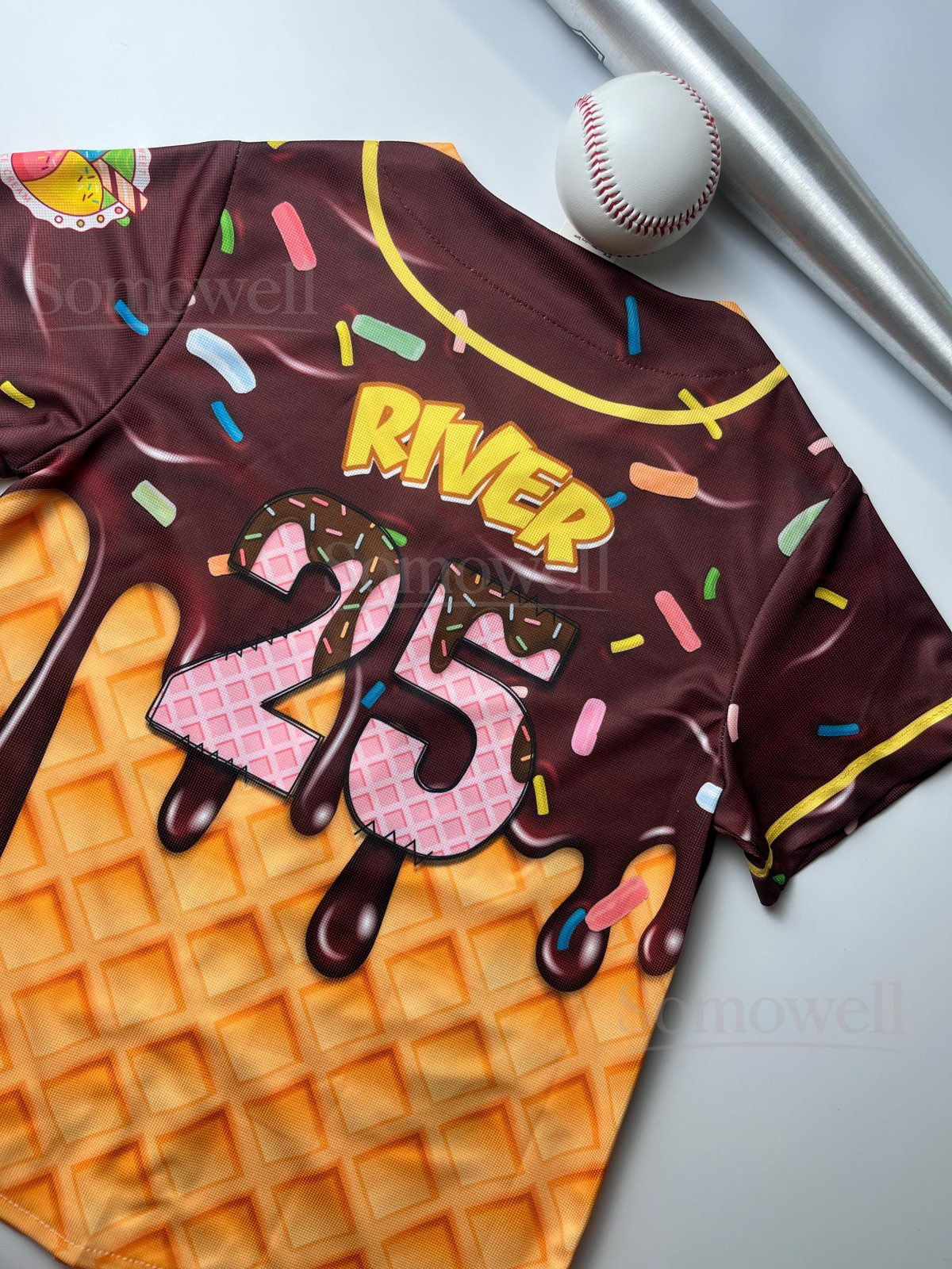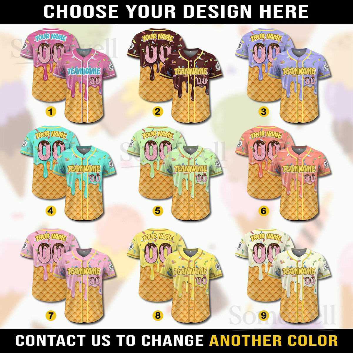Personalized Ice Cream Drip Baseball Jersey, Customizable for Men, Women, Youth and Kids in Multiple Colors