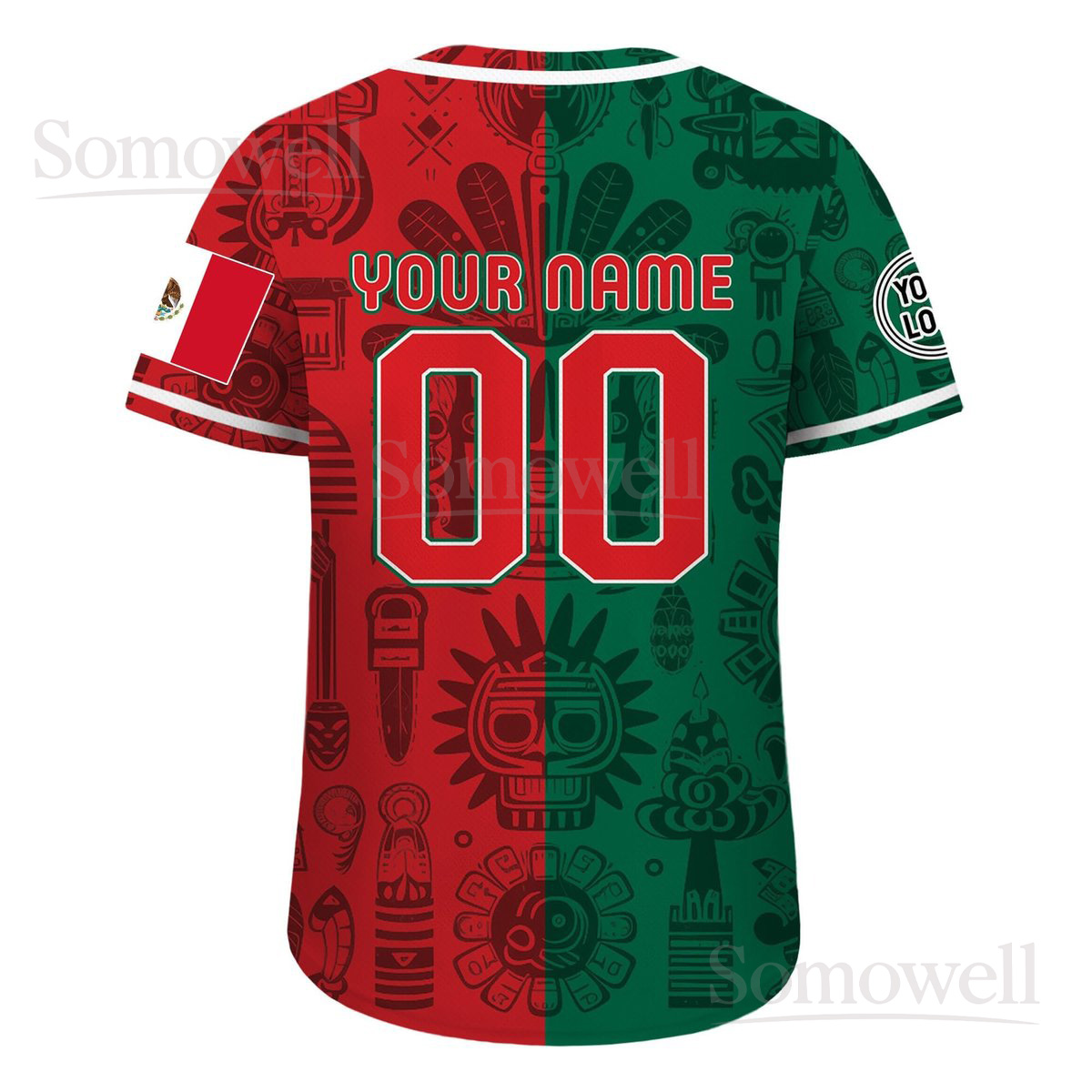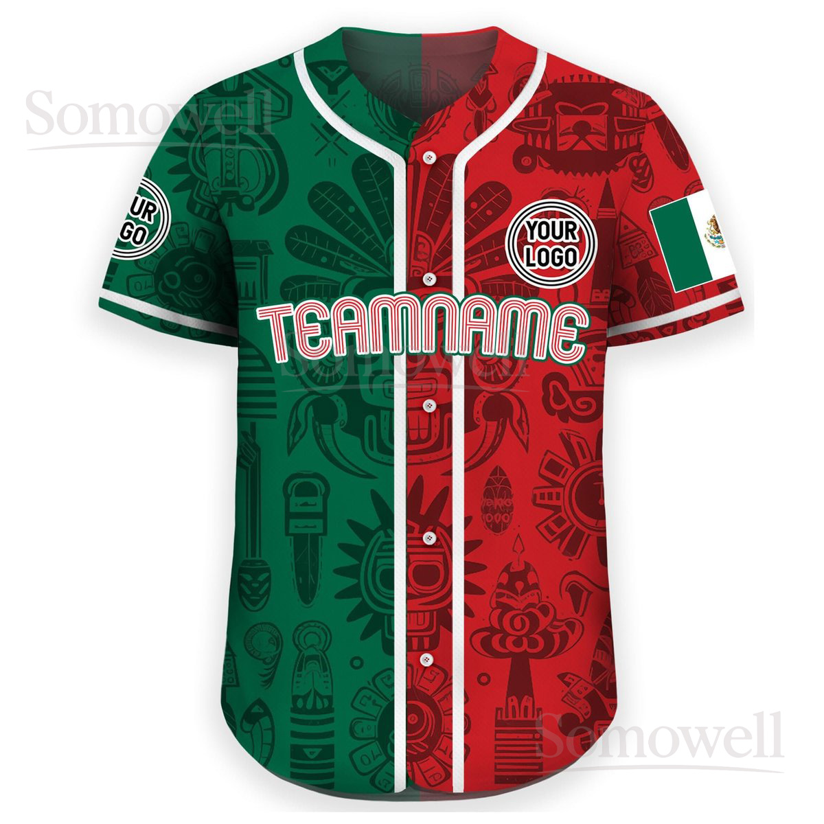 Personalized Mexican Flag Baseball Jersey with Custom Team Name and Number