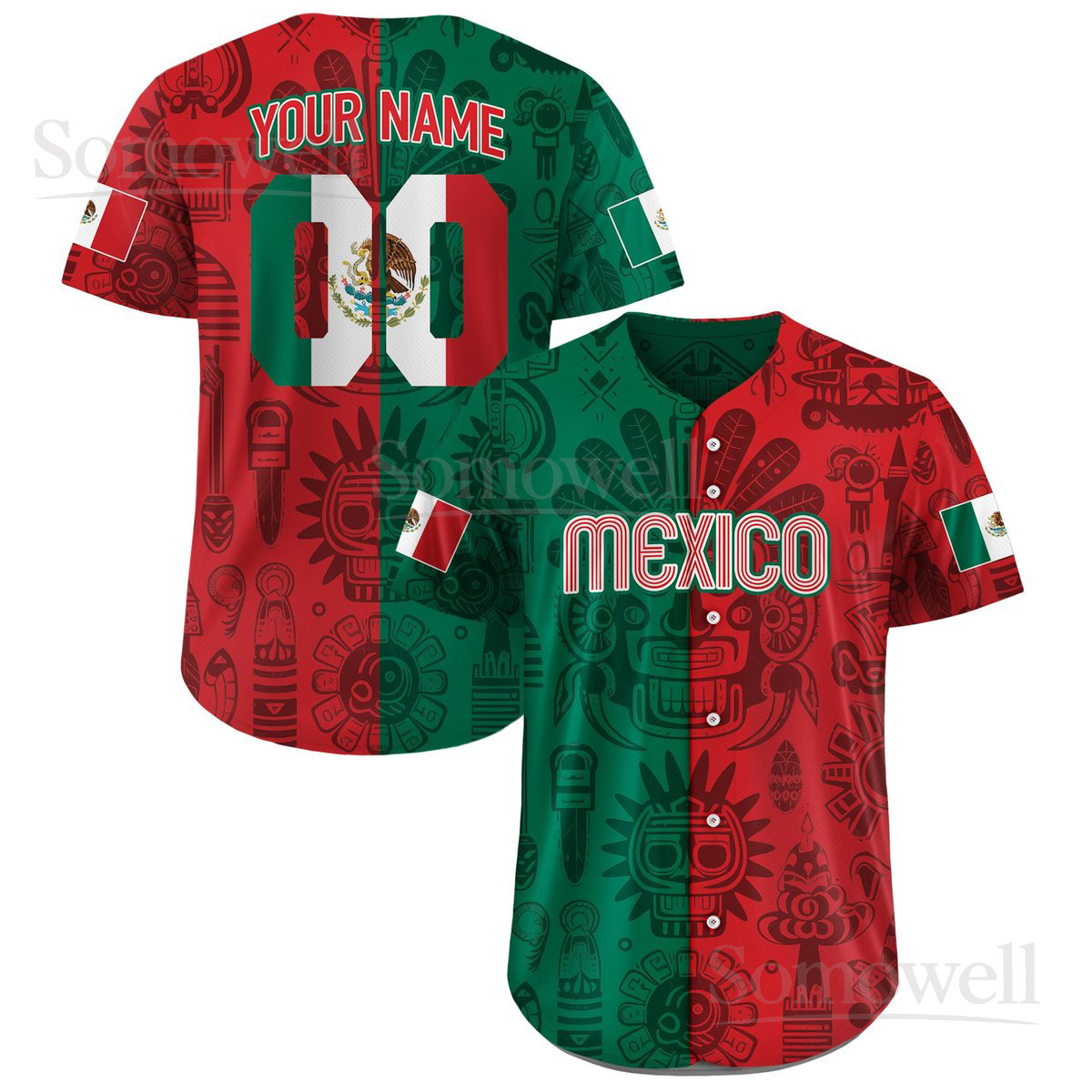 Personalized Mexico Baseball Jersey Custom Team Name and National Flag Design Multi Color Edition