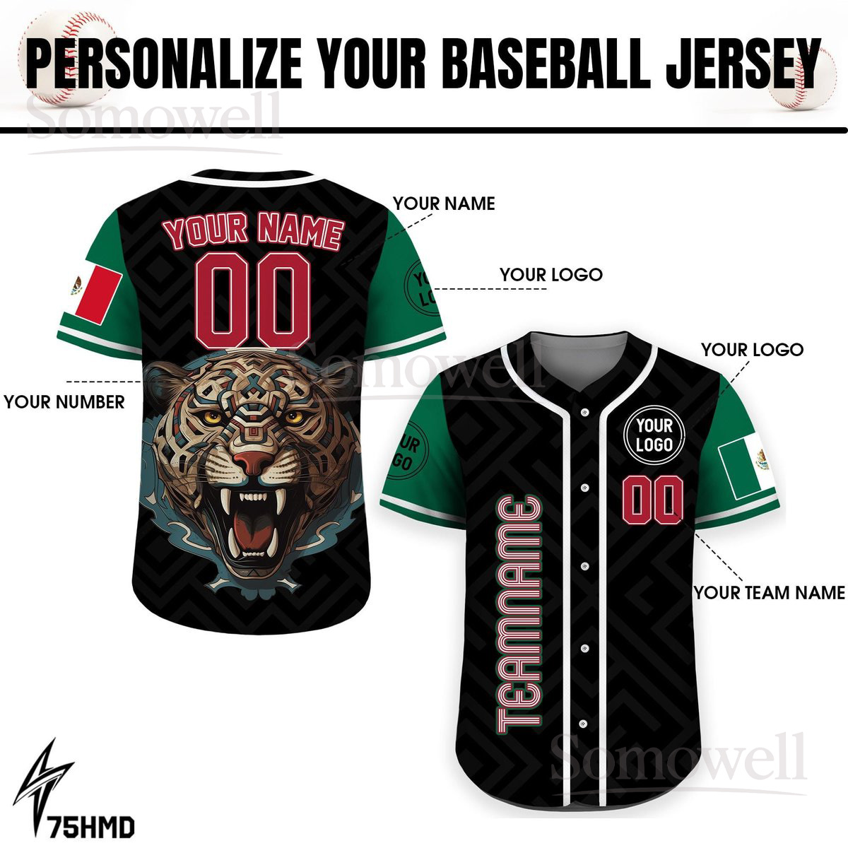 Personalized Mexico Baseball Jersey with Custom Tiger Design, Team Name and Number