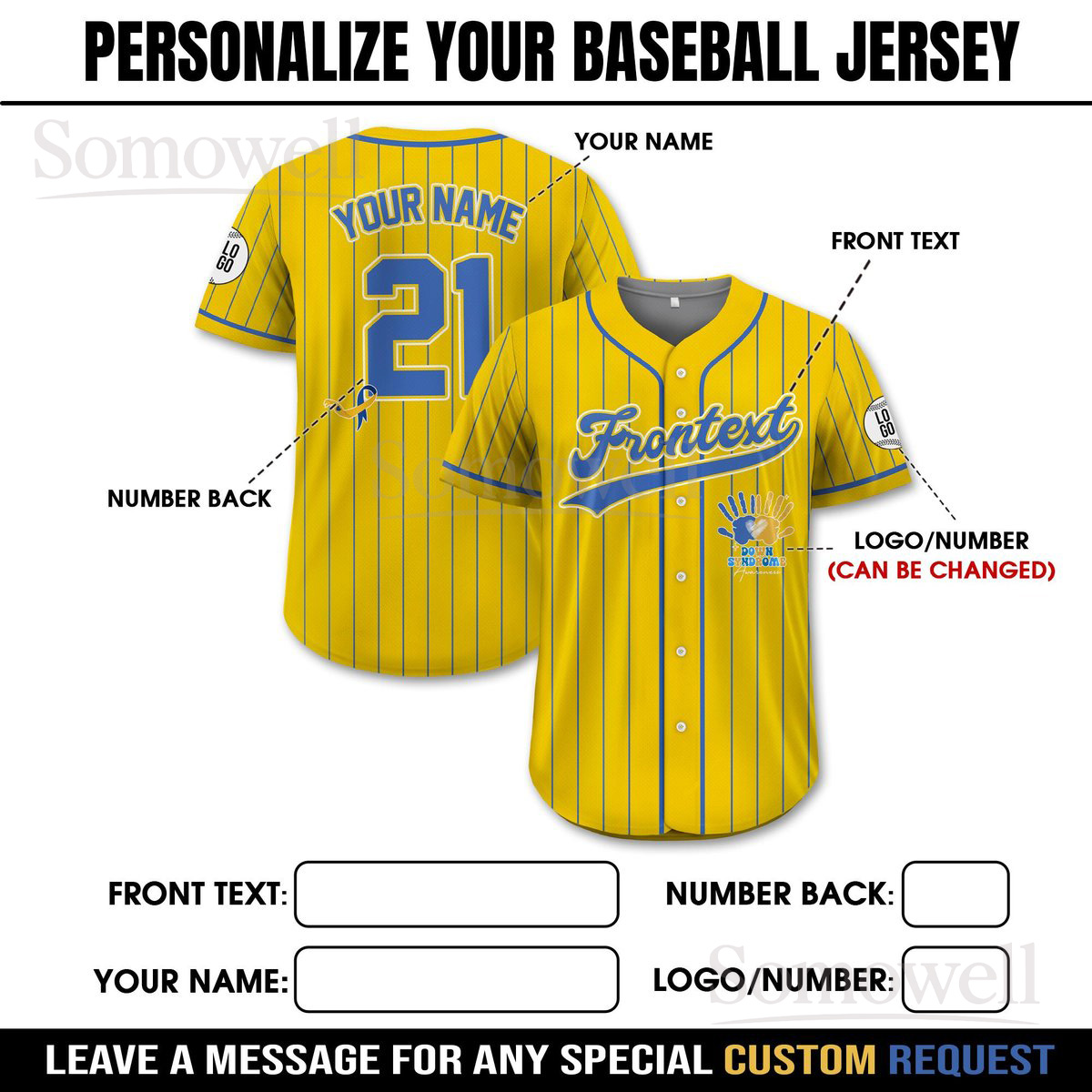 Personalized Name World Down Syndrome Awareness Baseball Jersey Support Squad T21 Jersey in Multiple Colors