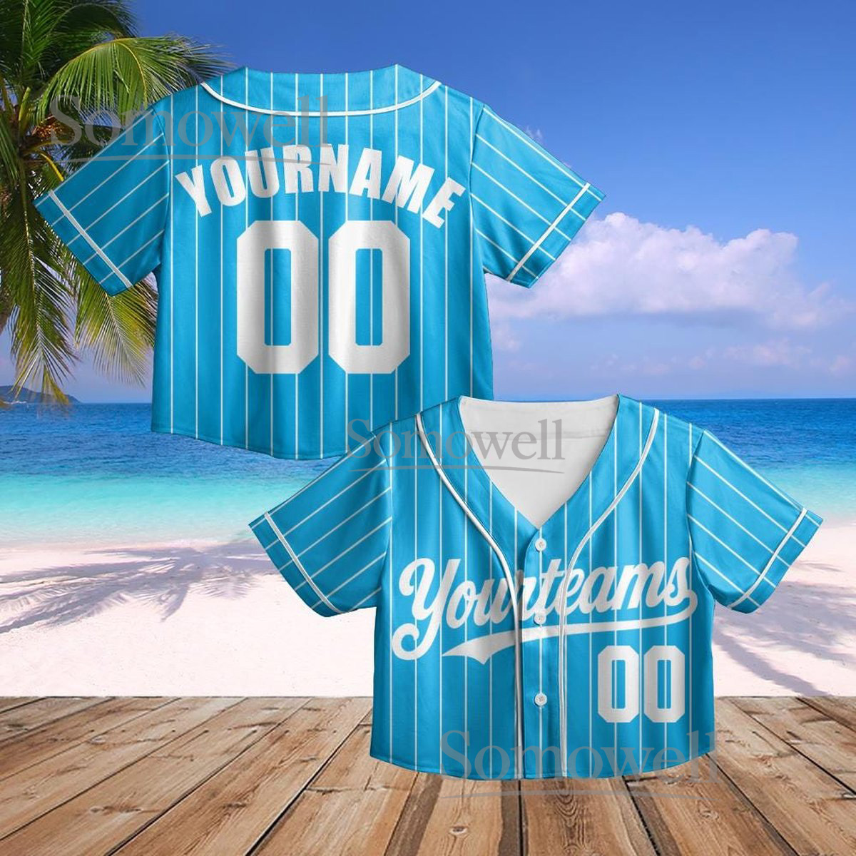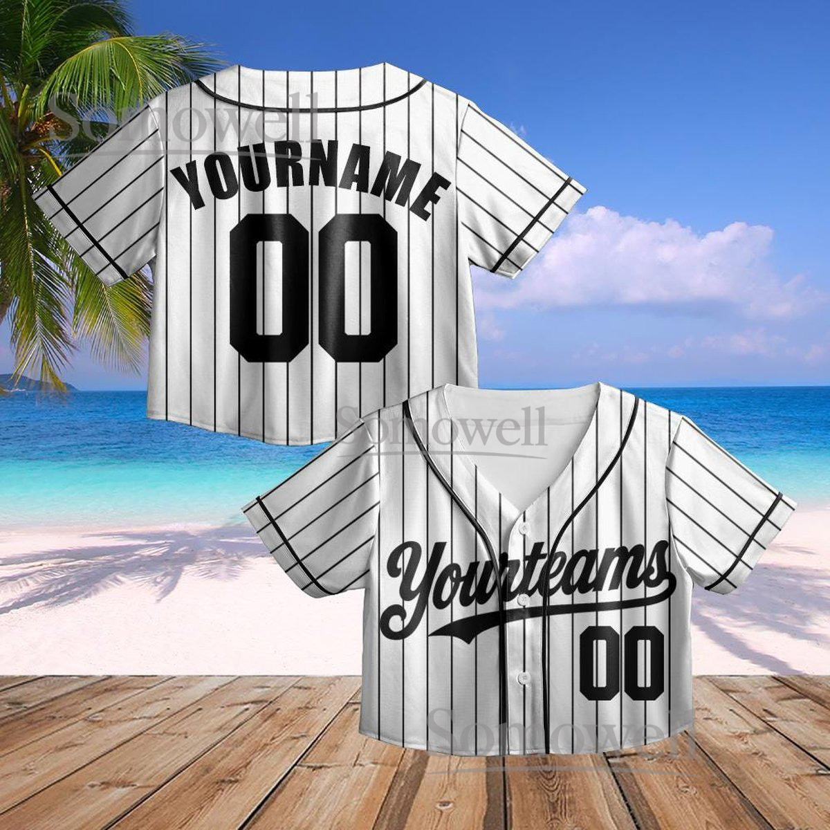 Personalized Pinstripe Crop Baseball Jersey with Team Name and Number for Customization