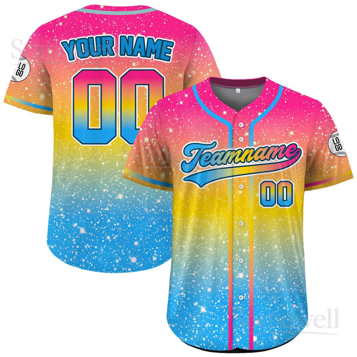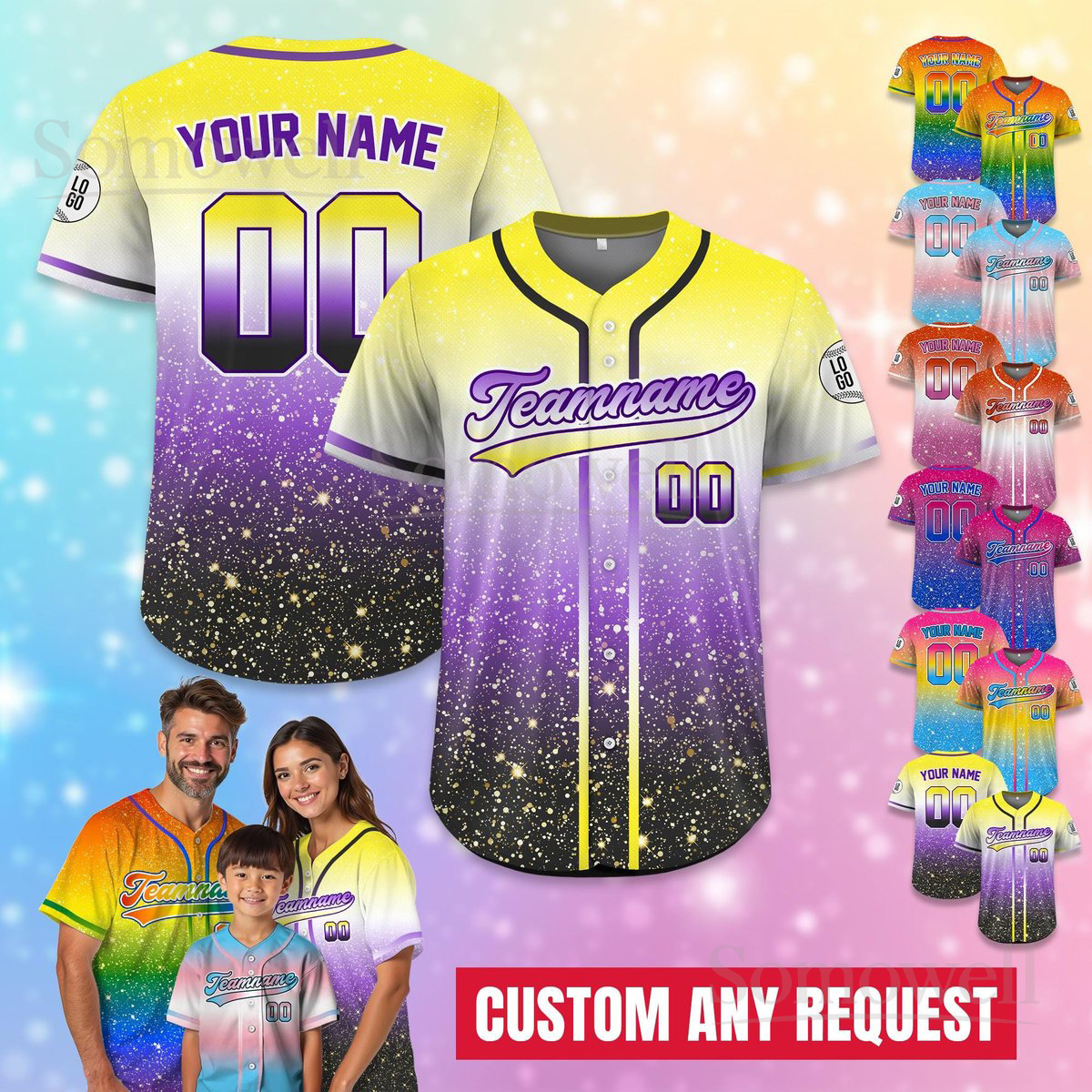 Personalized Team Name Number Baseball Jersey for Adult Youth Kid LGBTQ Pride Month Celebration Outfit Multi Color Edition