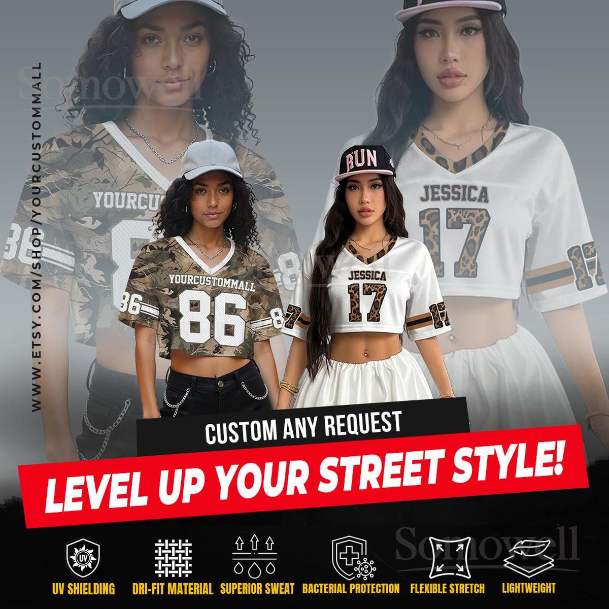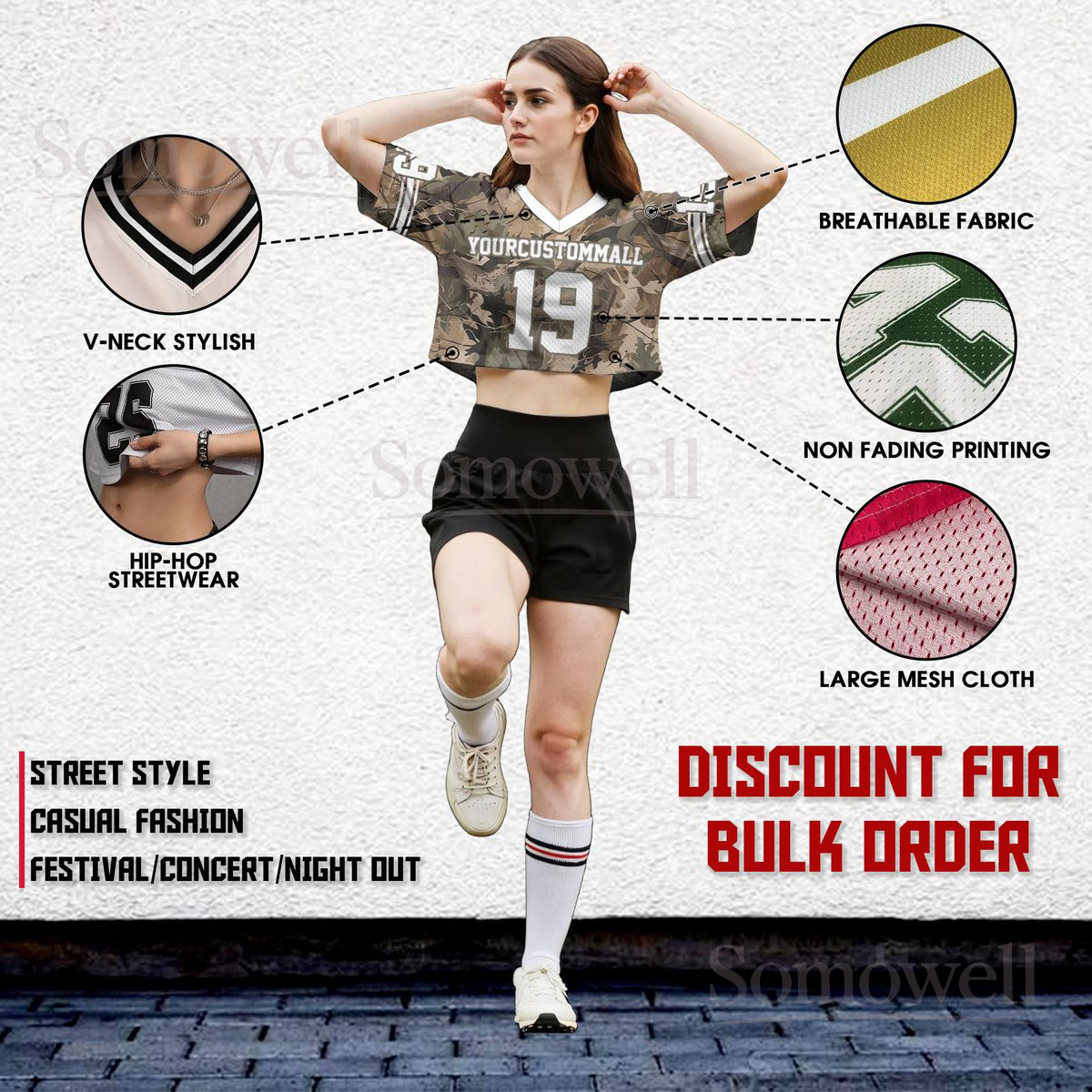 Personalized Women39s Crop Top Football Jersey Custom Team Name Number Logo Women Crop Tee Multi Color Edition
