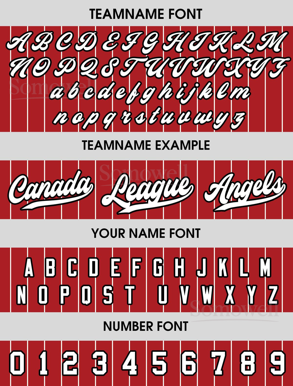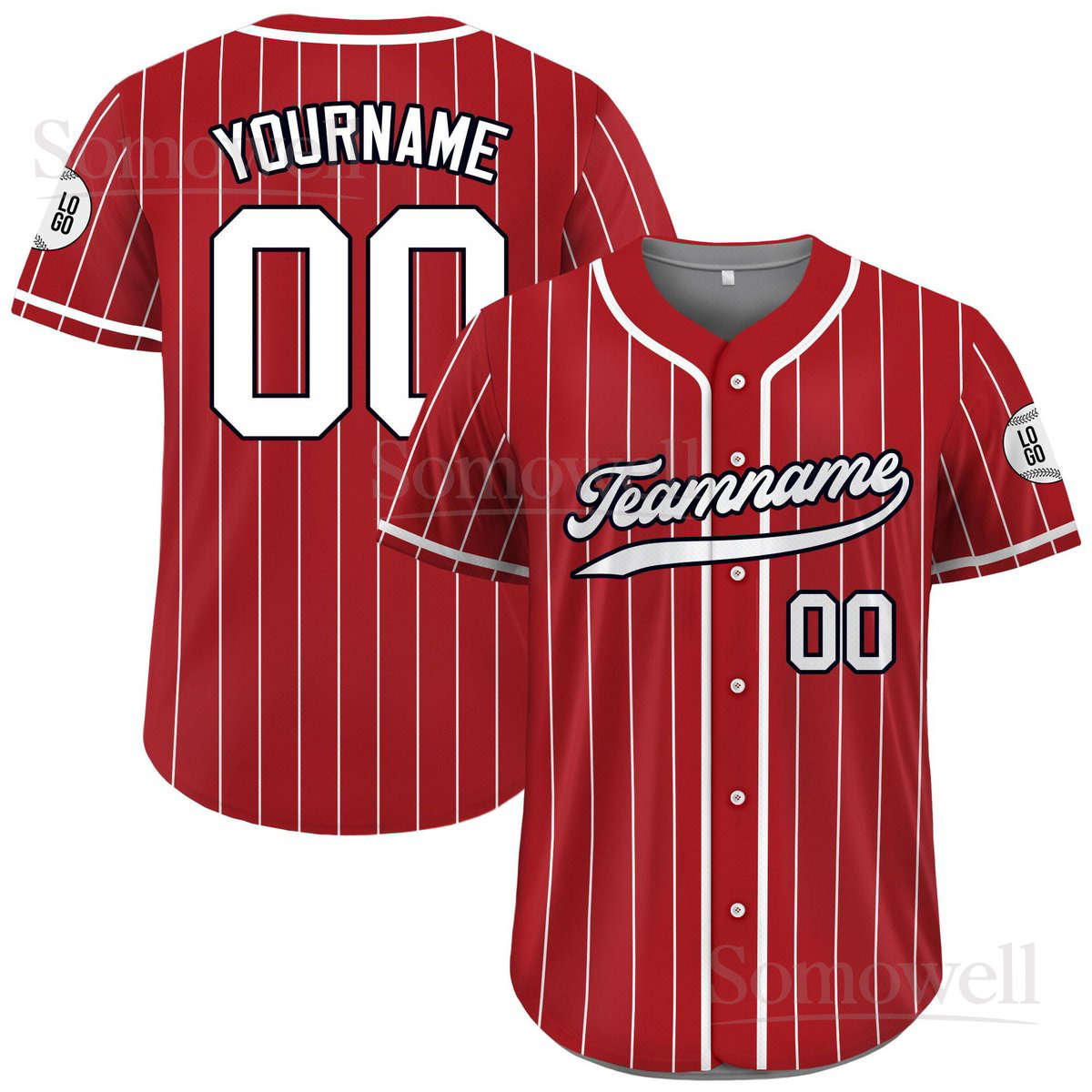 Printed Red White Custom Baseball Jersey with Teamname Name Number Personalized Striped Design Multi Color Edition