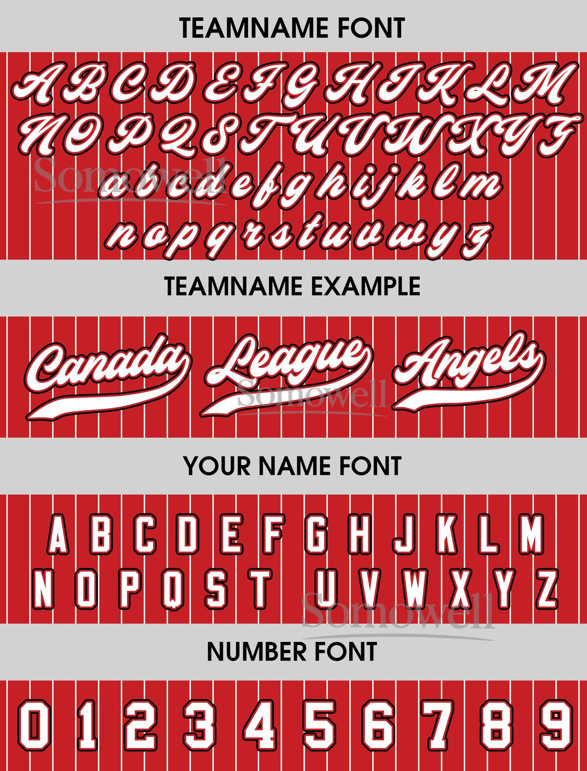 Printed Red White Pinstripe Custom Baseball Jersey with Teamname Name Number Available in Multiple Colors