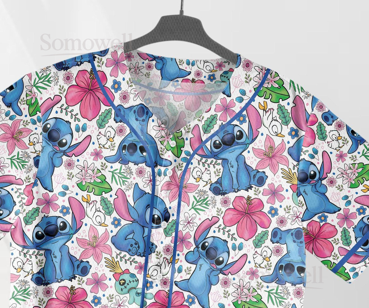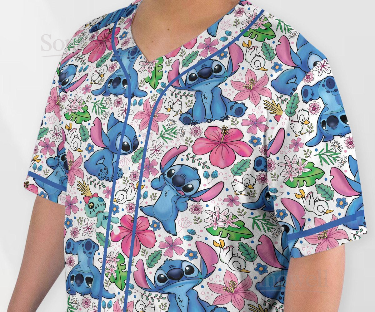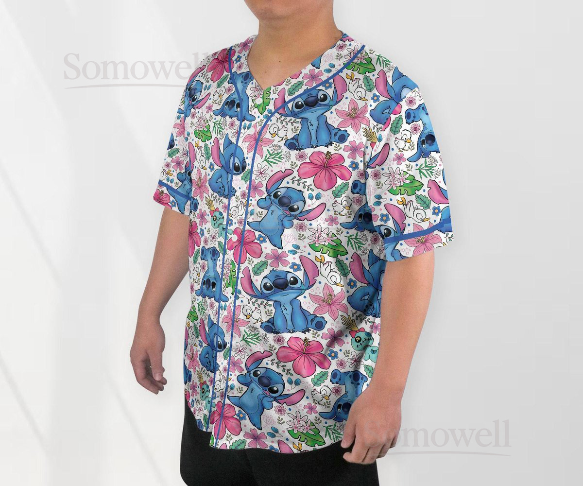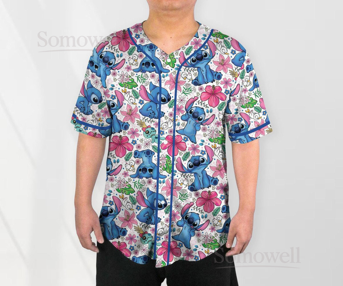 Stitch Jersey Shirt Aloha Tropical Baseball Jersey Stitch Family Shirt Hibiscus Stitch Shirt Gifts