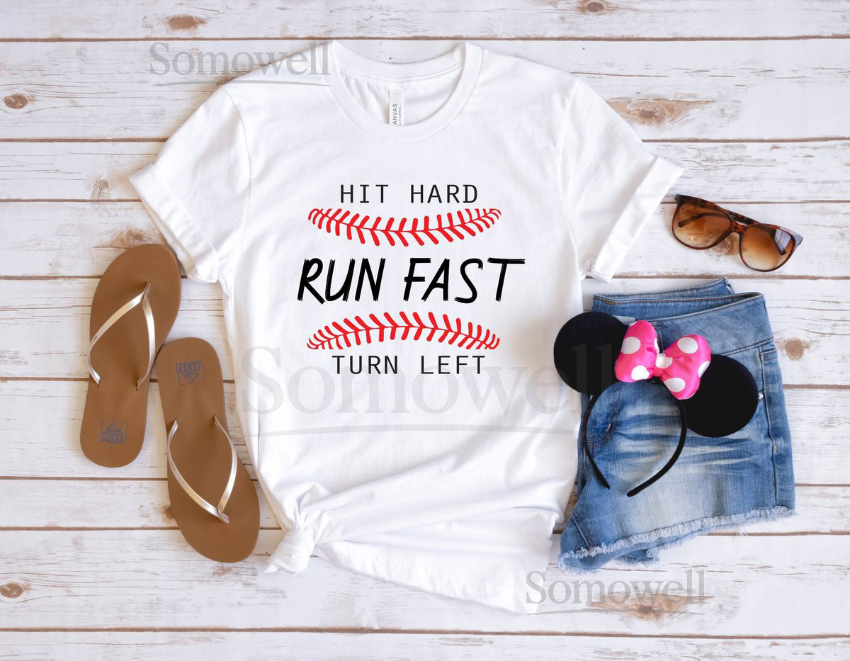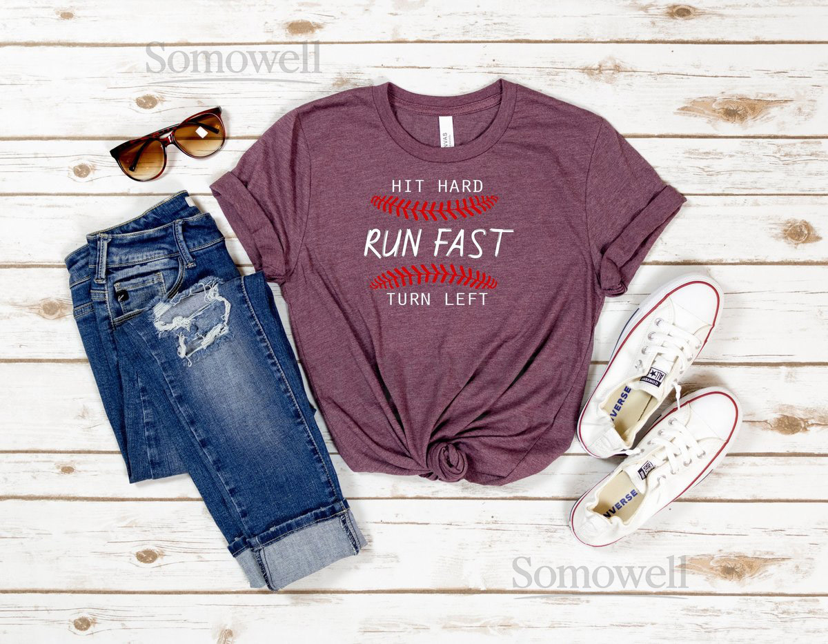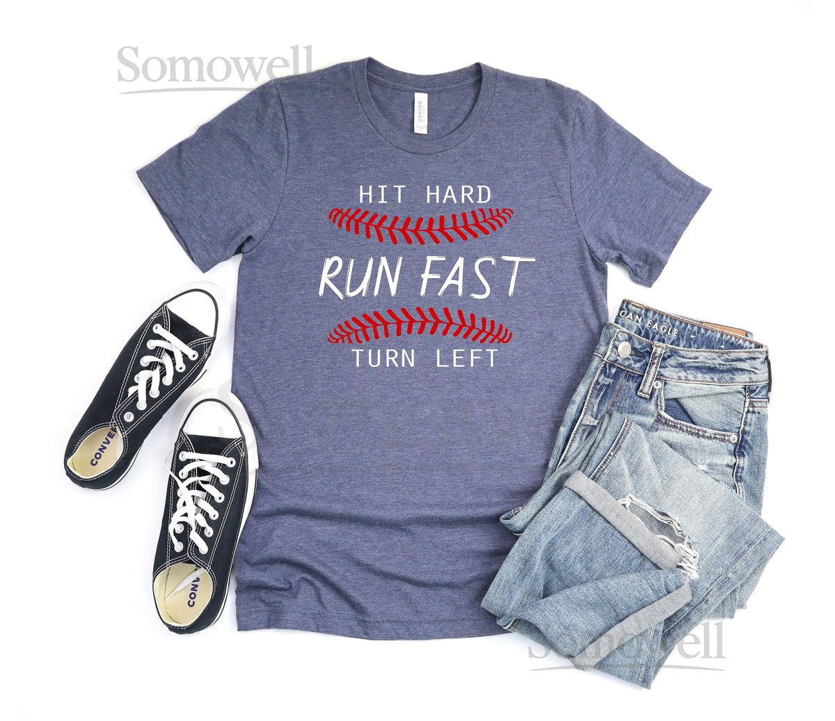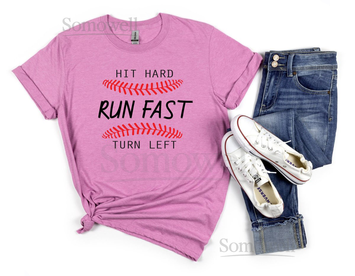 Baseball Shirt Hit Hard Run Fast Turn Left Game Day Tee_62