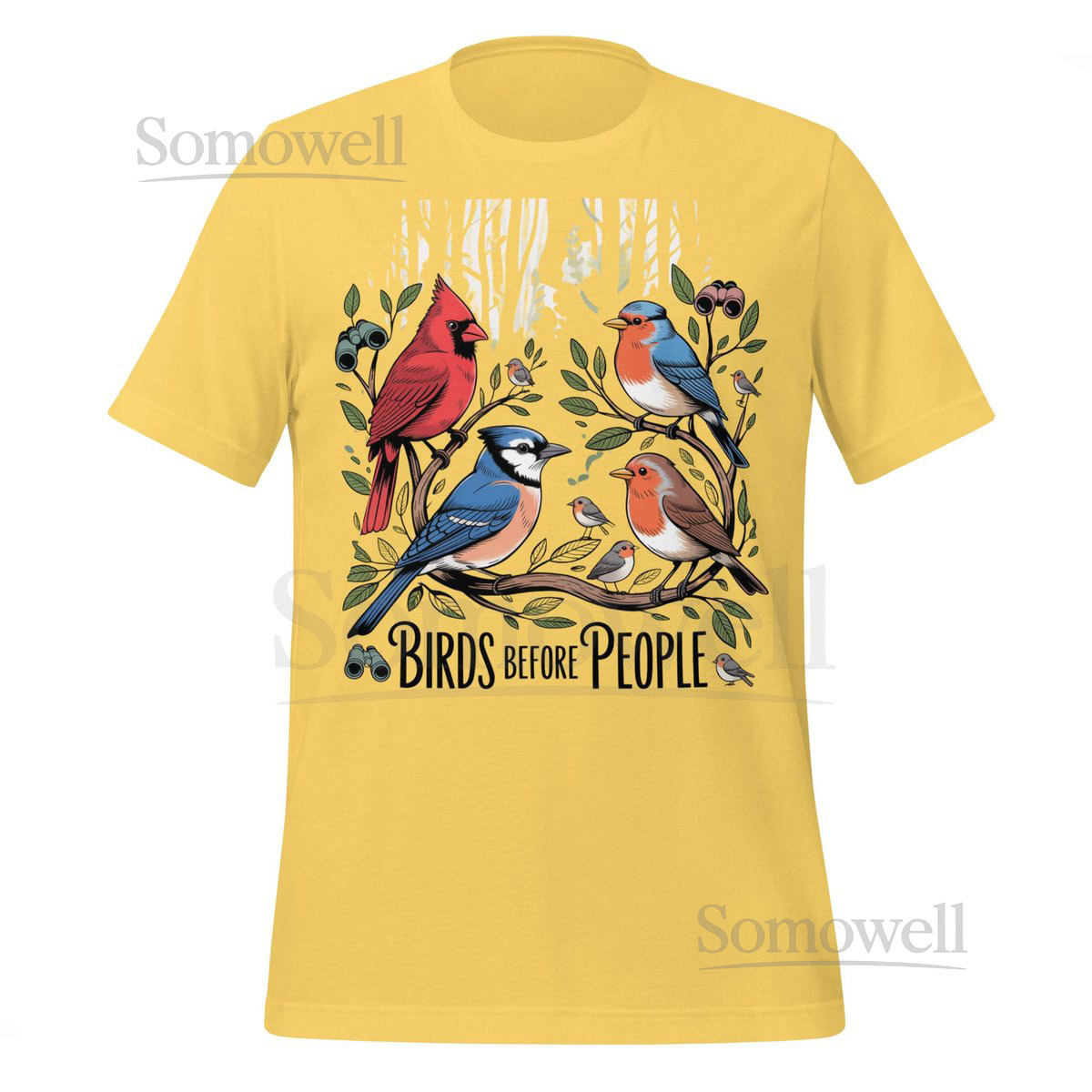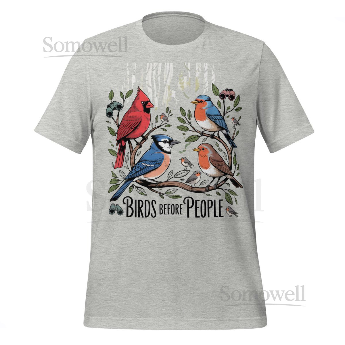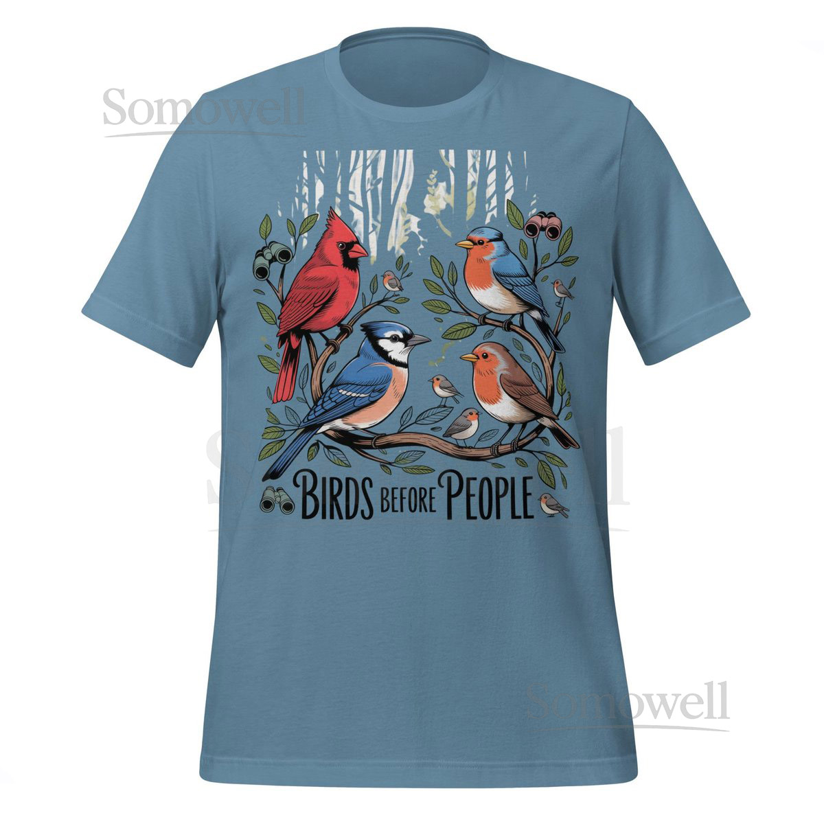 Birds Before People Shirt Funny Birdwatcher Tee Nature Birding Gift Bluebird Cardinal Blue Jay Robin Graphic Outdoor Birder T-Shirt_75