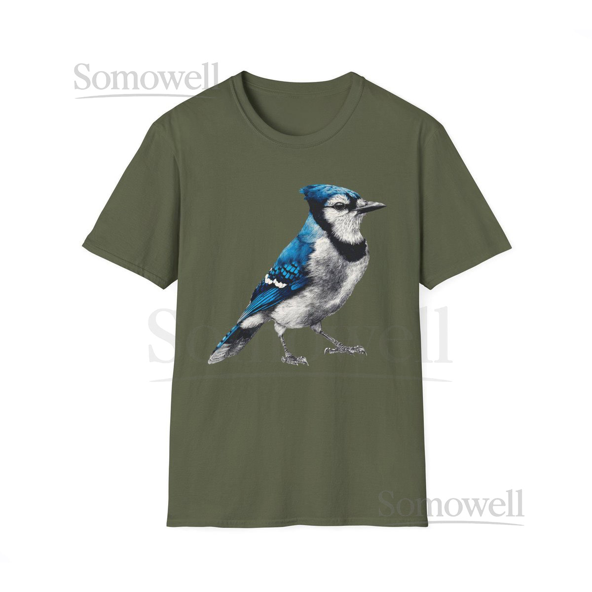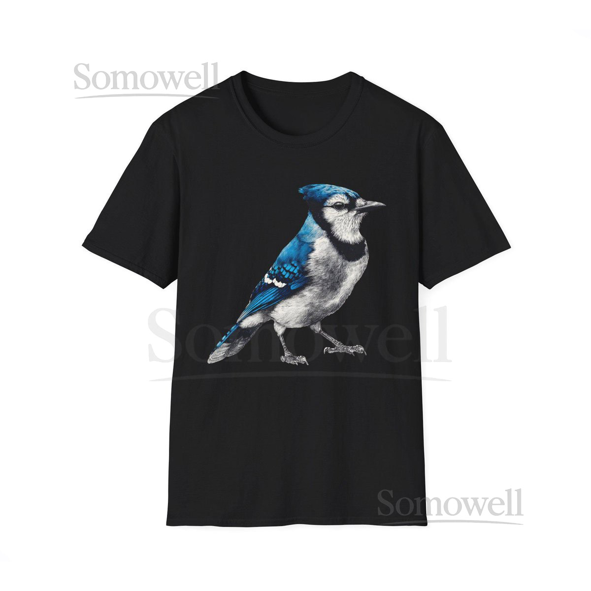 Blue Jay Illustration T-Shirt Unisex Softstyle Nature Tee_102