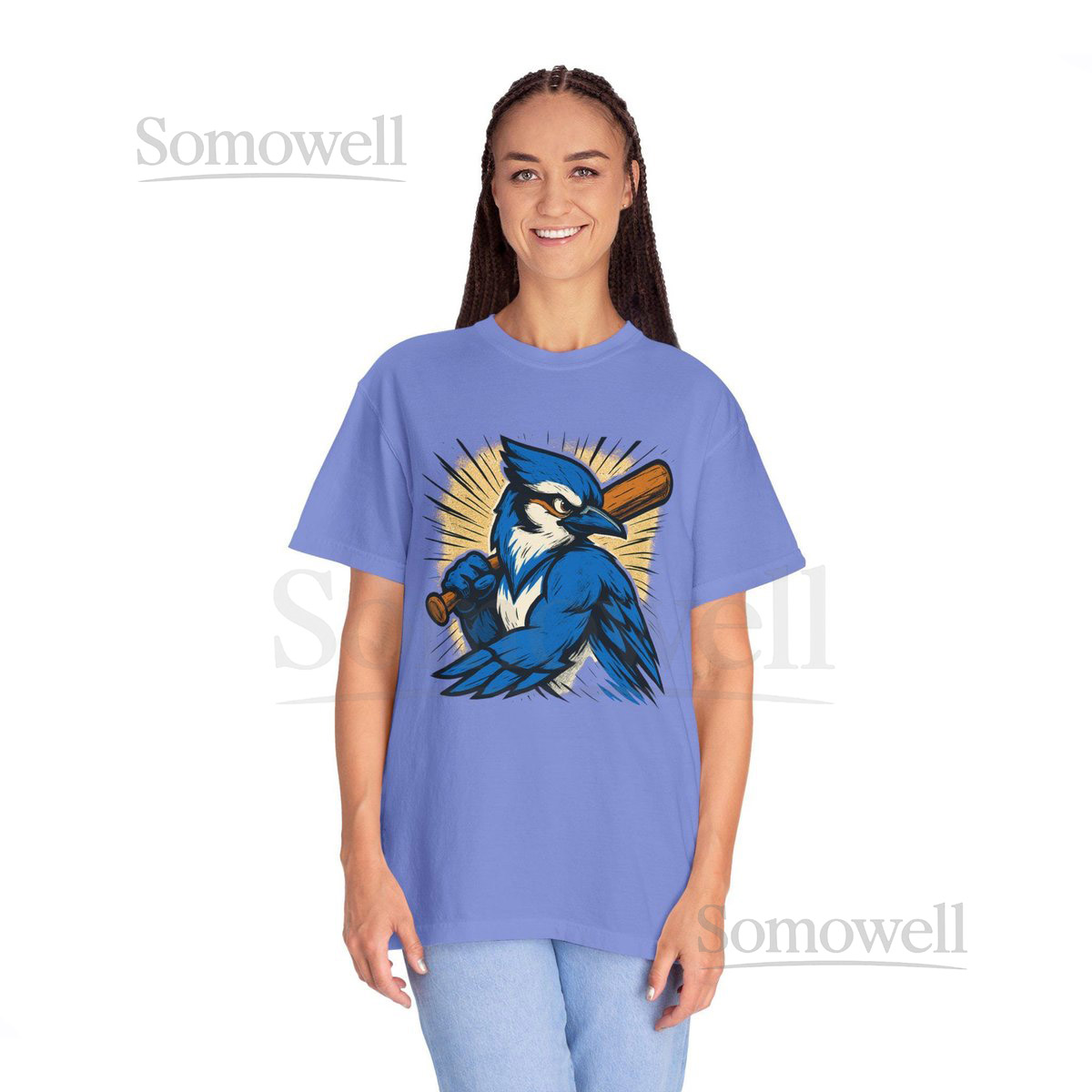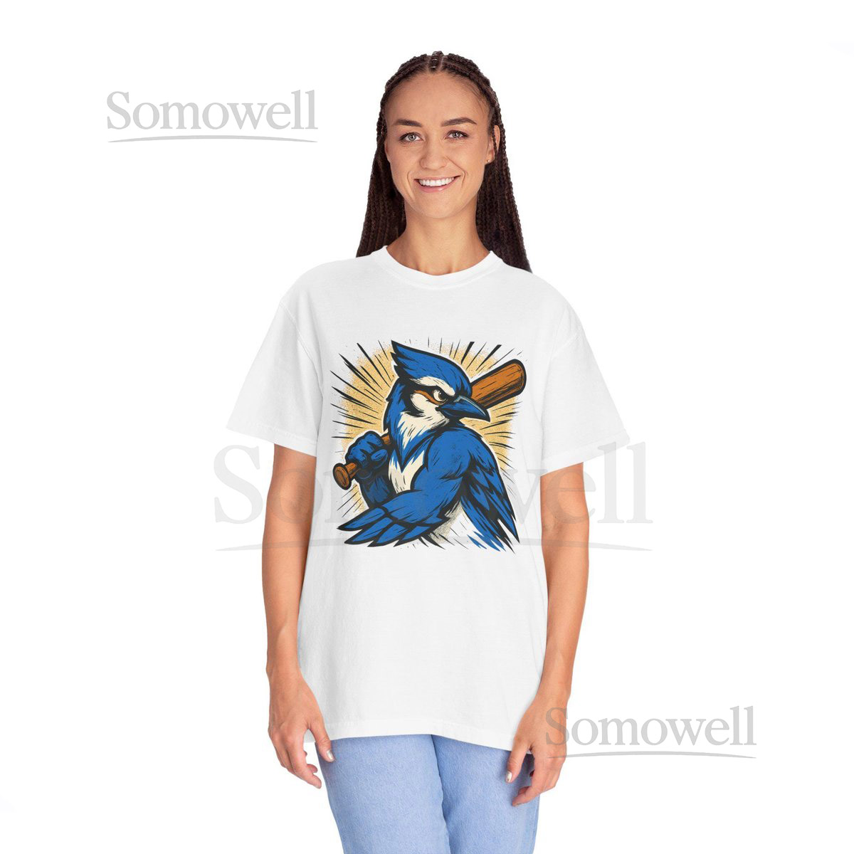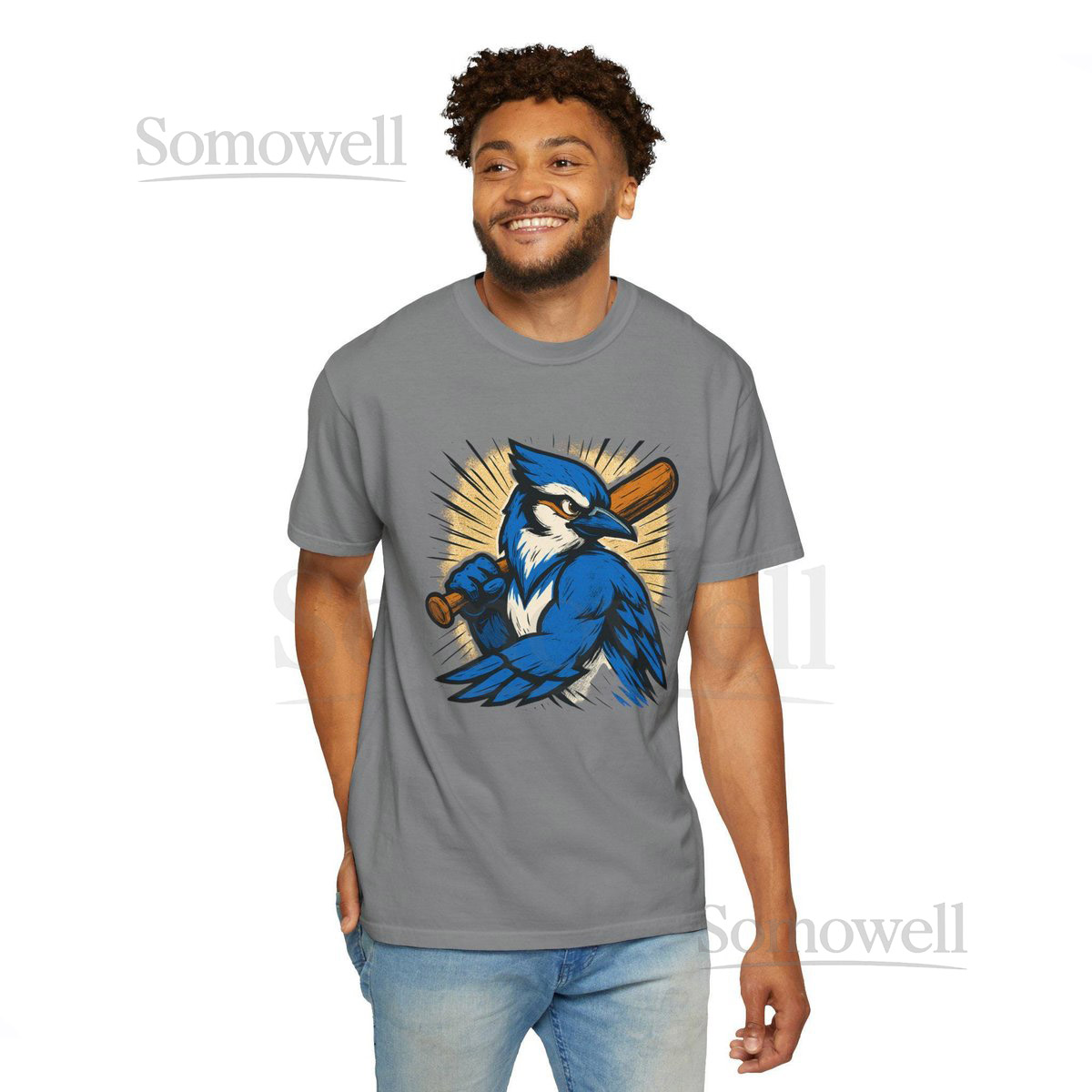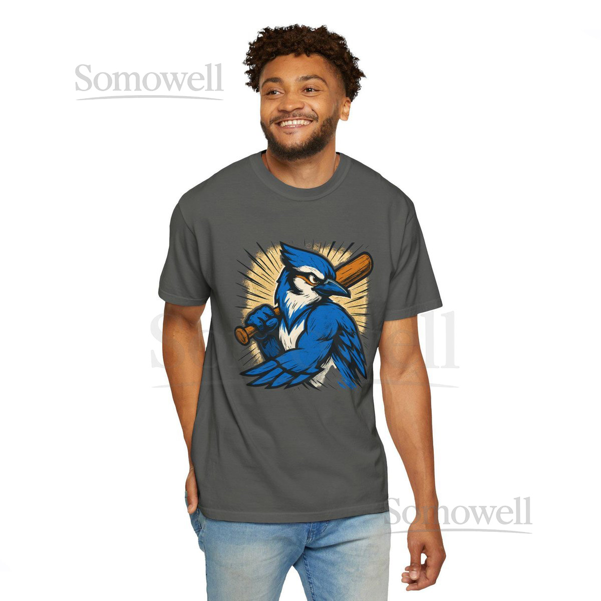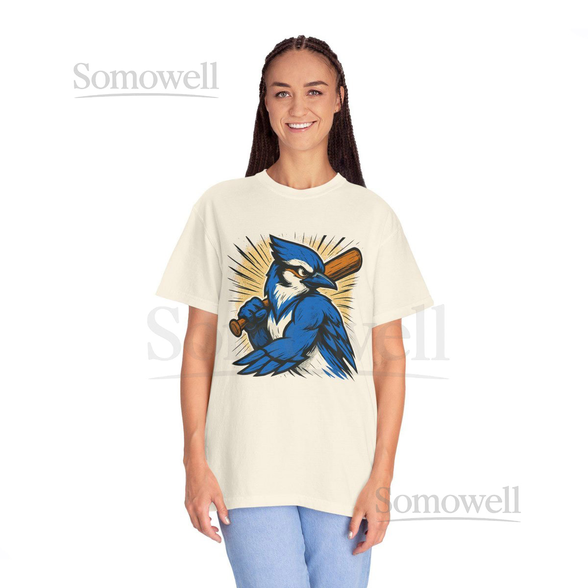 Blue Jay with a power bat Vintage Style Graphic Tee Perfect for Sports Fans Gift for Nature Lovers Casual Wear _126