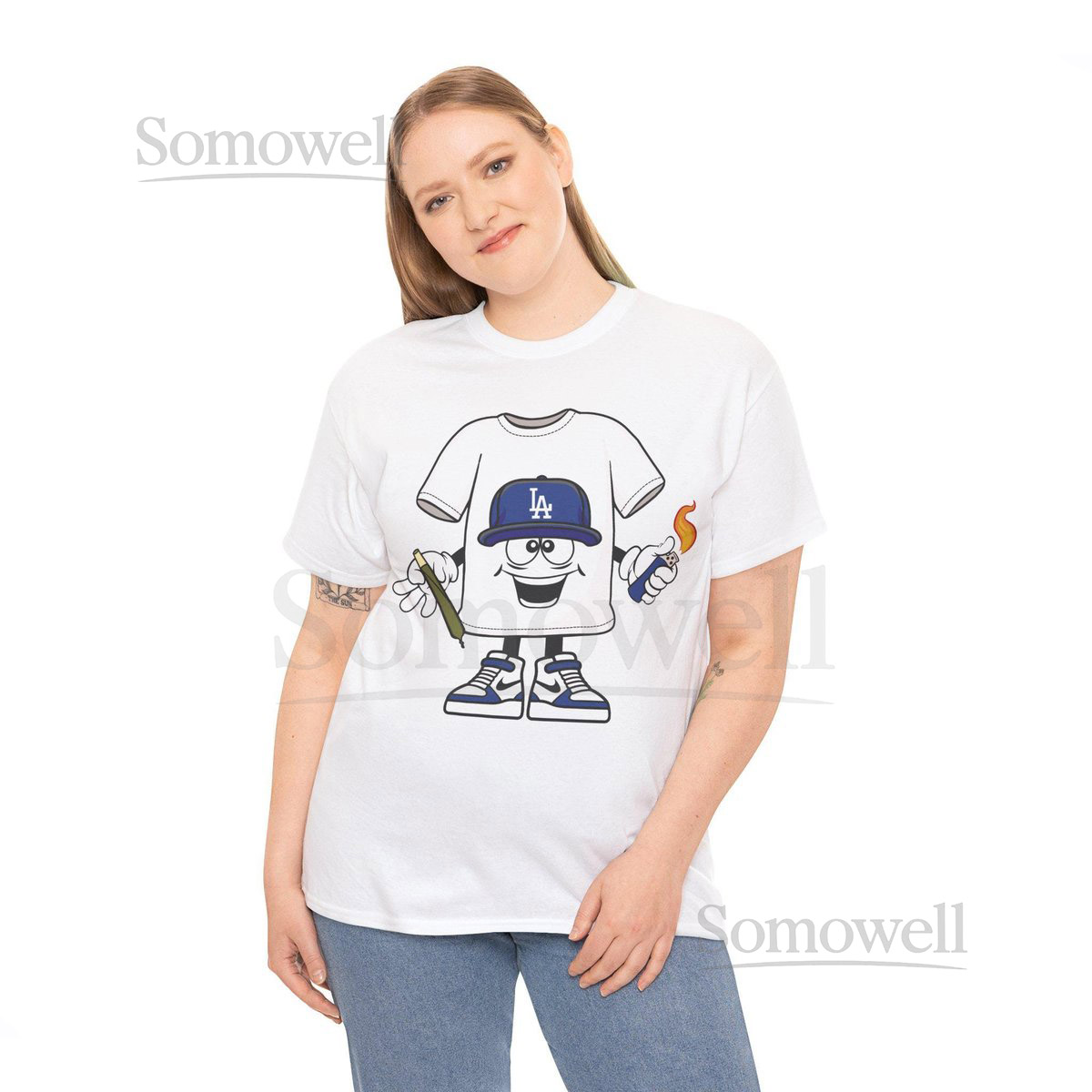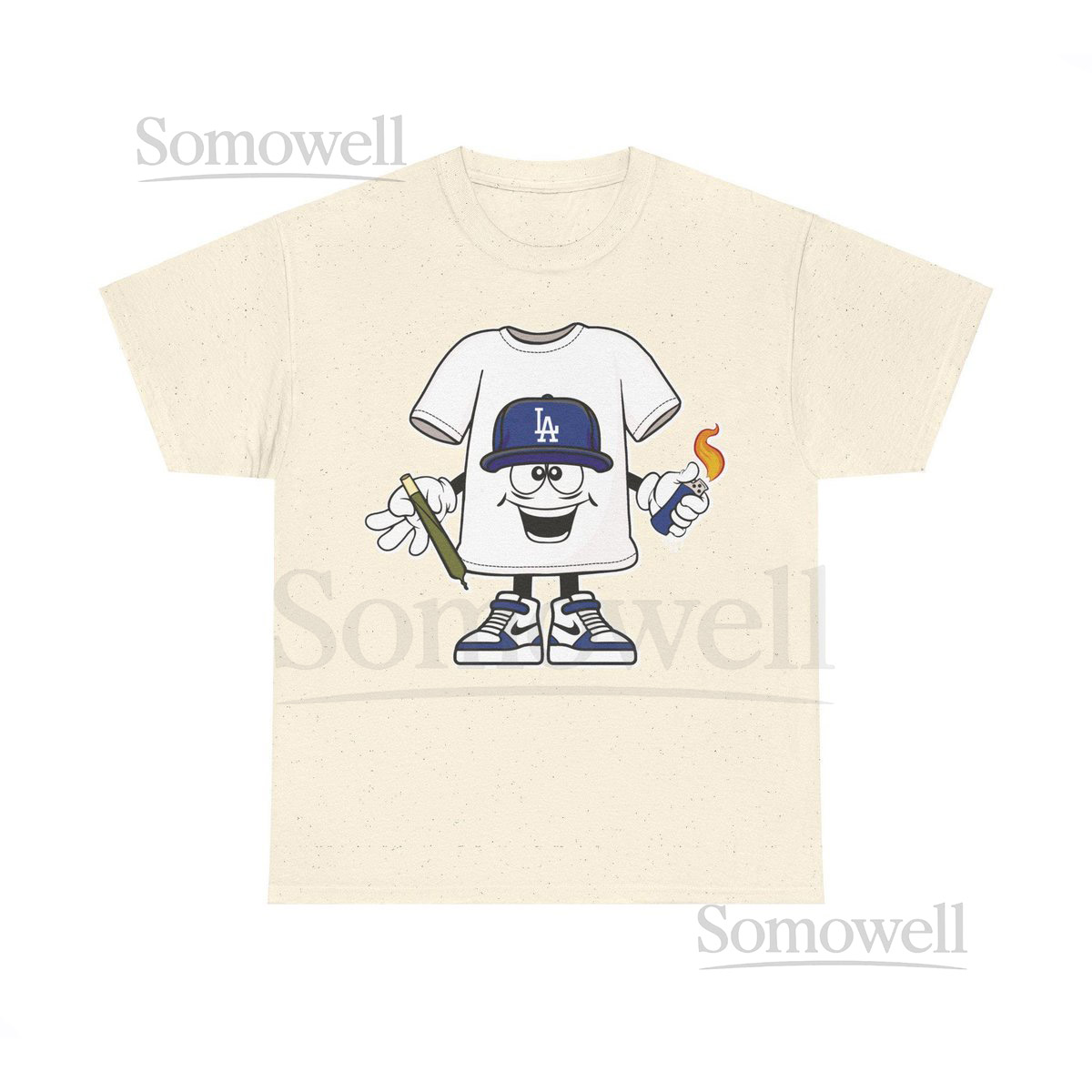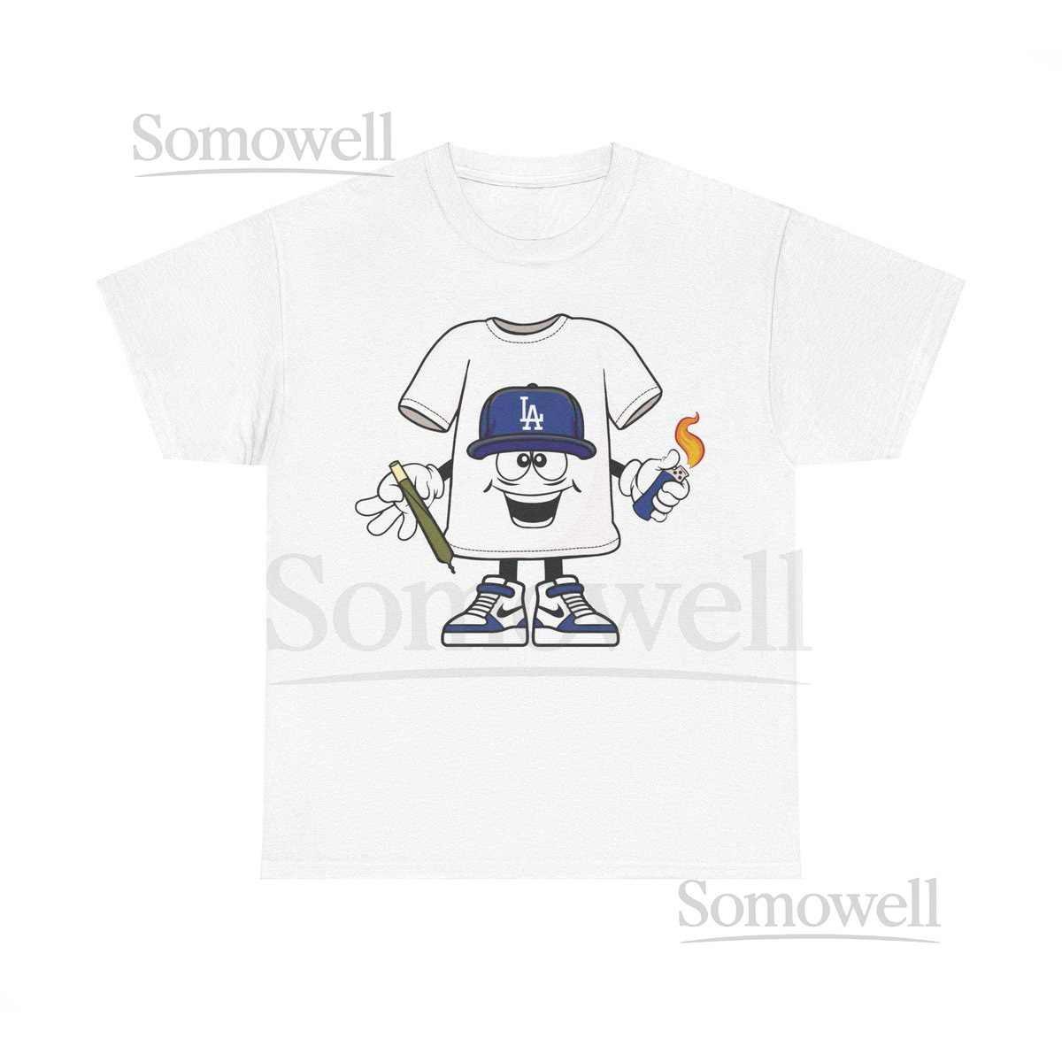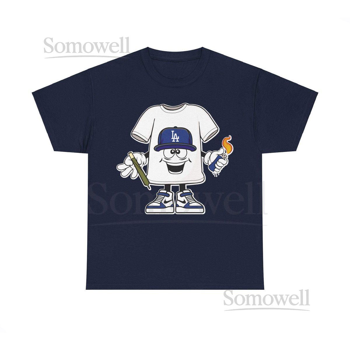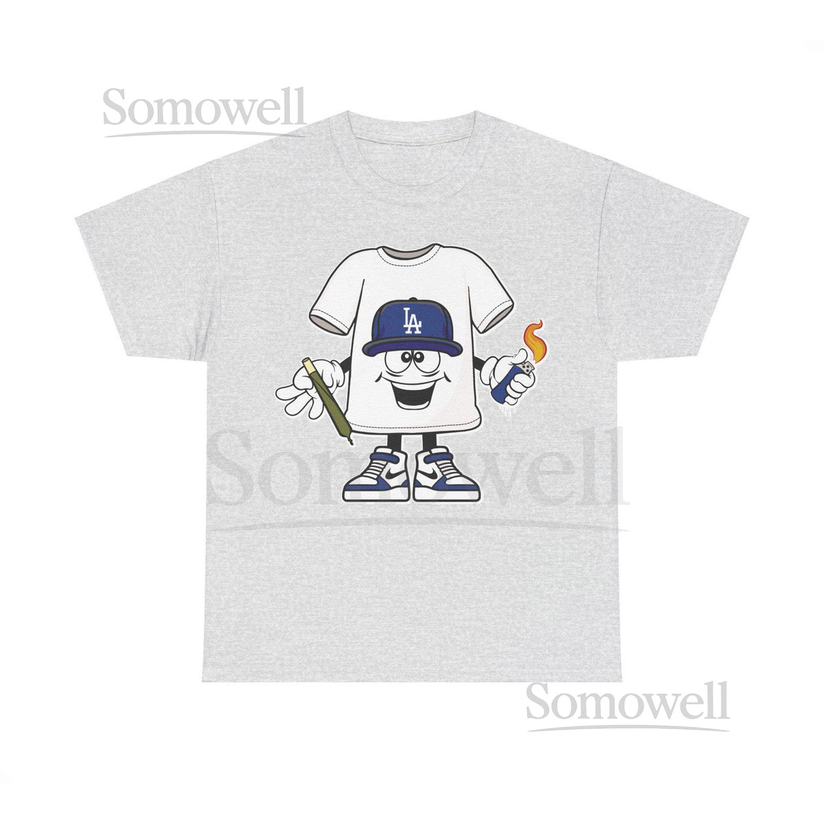 Blunt Lighter blue LA cap Cartoon Los Angeles Dodgers Weed Smoking T-Shirt Funny Baseball Tee Los Angeles Stoner Shirt_166
