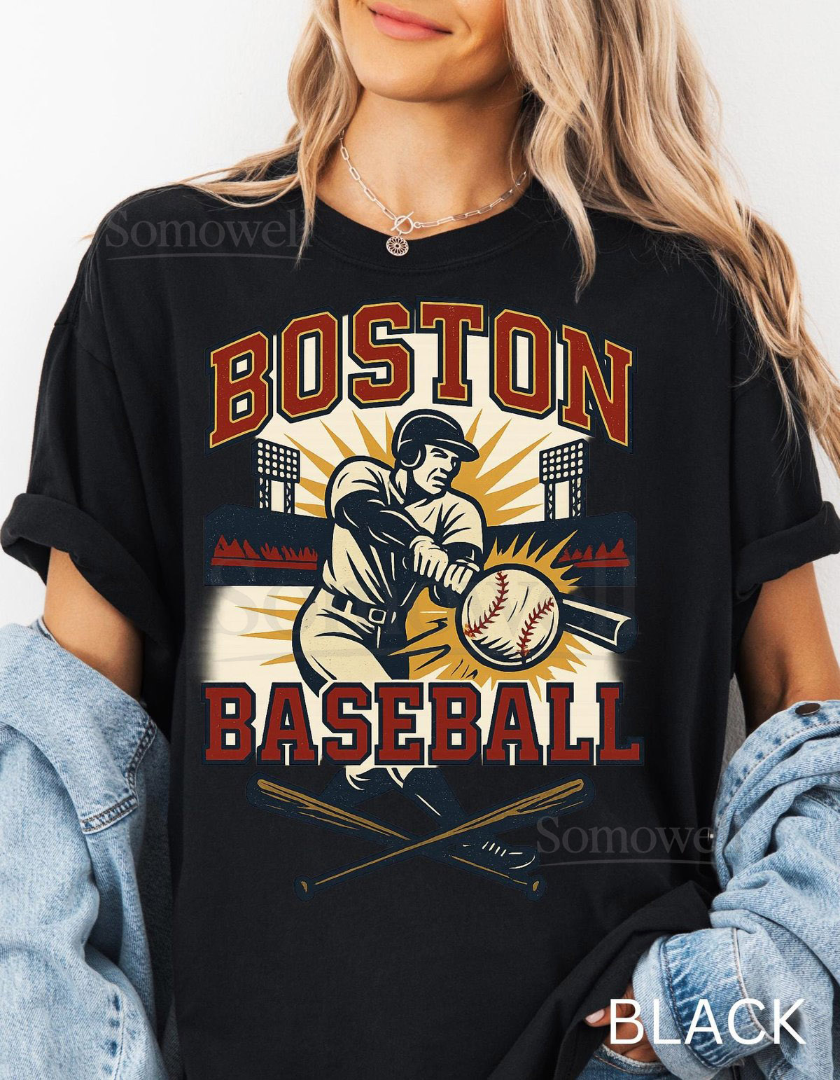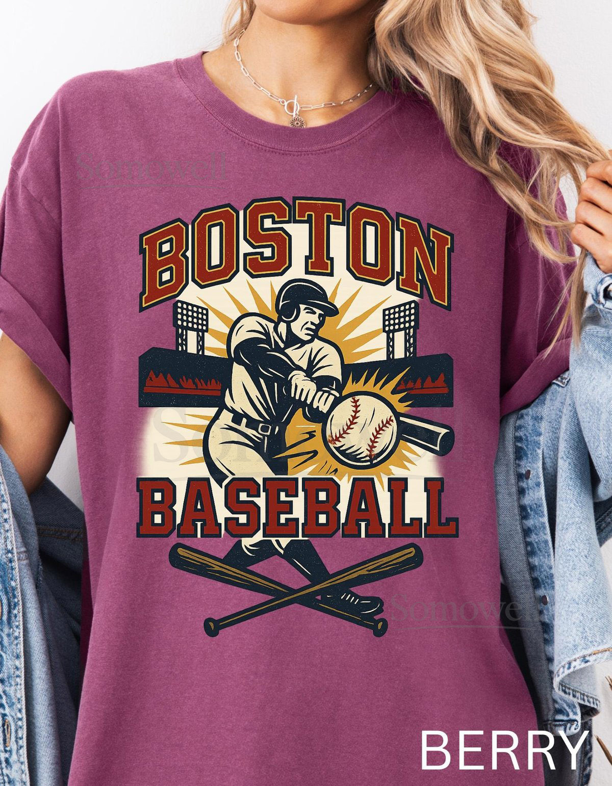 Boston Baseball Shirt Comfort Colors Cotton Vintage Batter Graphic Stadium Tee_180