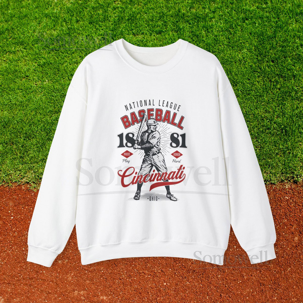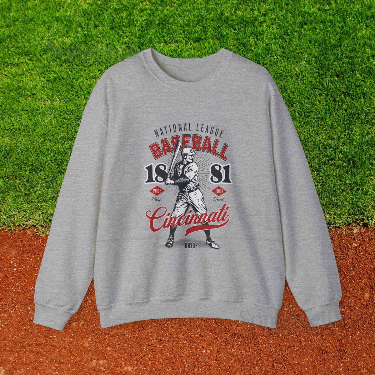 Cincinnati Baseball Crewneck Sweatshirt Gameday Pullover for Cincy Baseball Fans Vintage Inspired National League Baseball_210