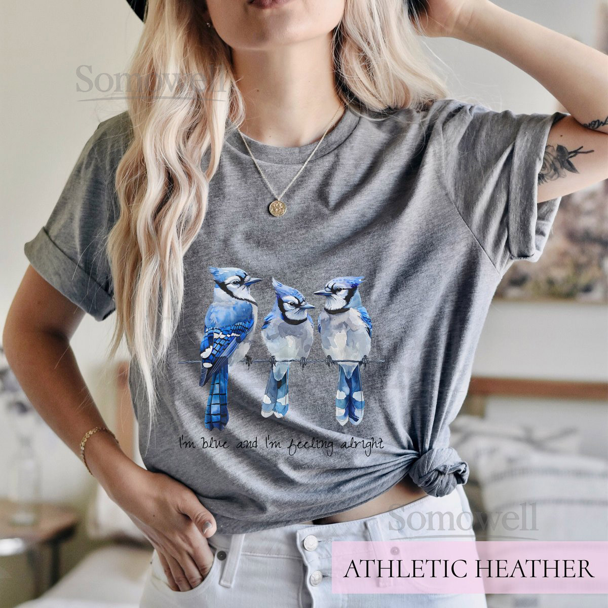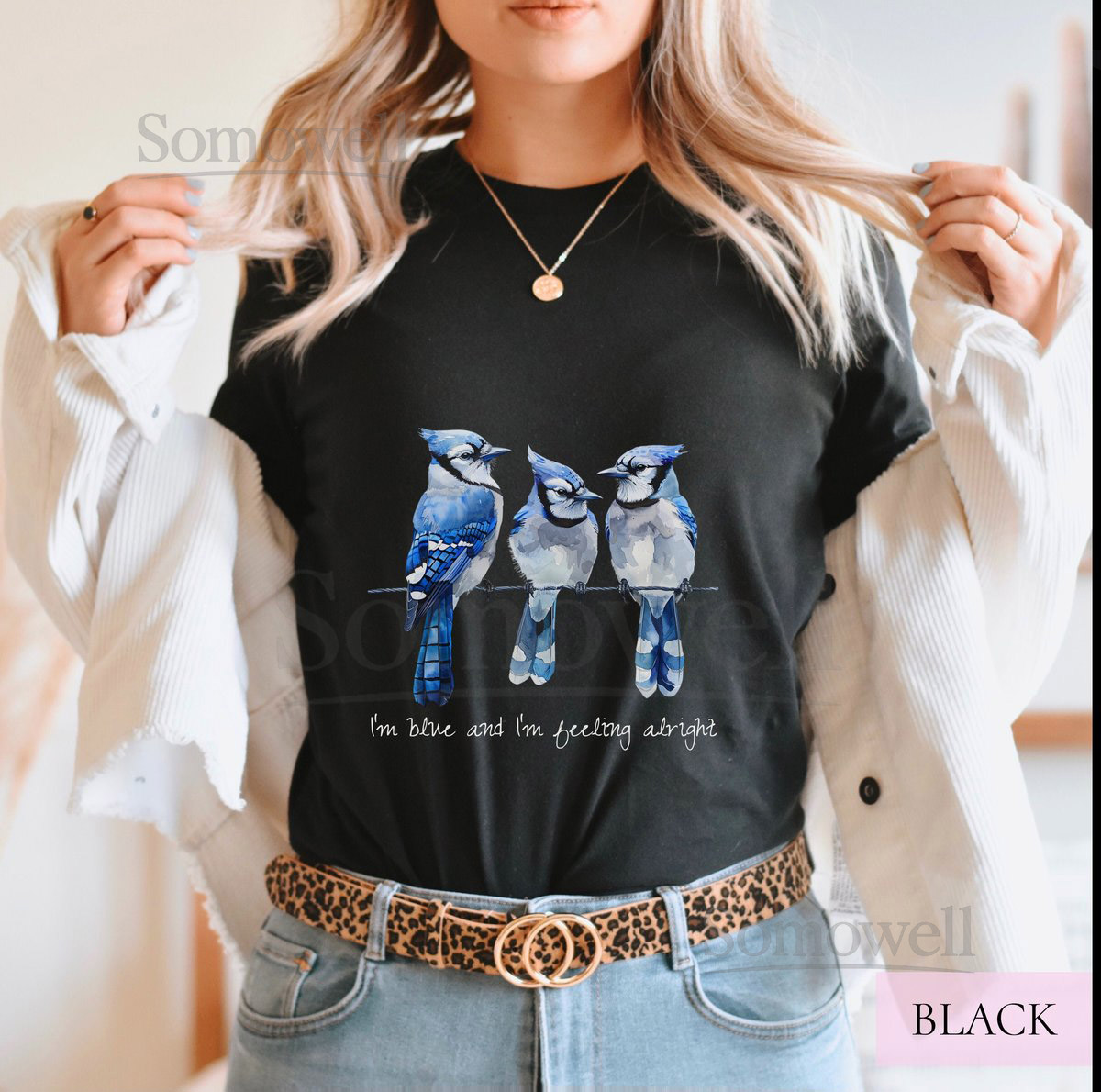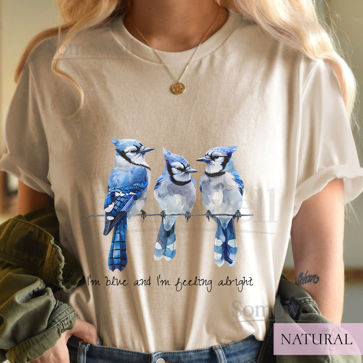 Cute Blue Jays T-Shirt I’m Blue and I’m Feeling Alright Birds Shirt Nature Lover Graphic Tee Gift for Bird Lover Cottagecore Aesthetic_250