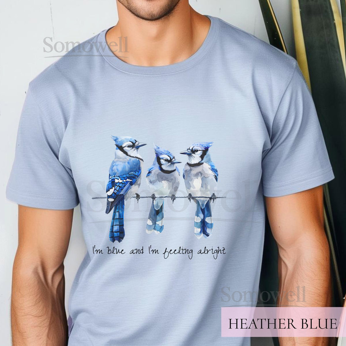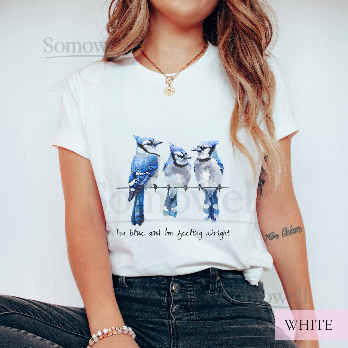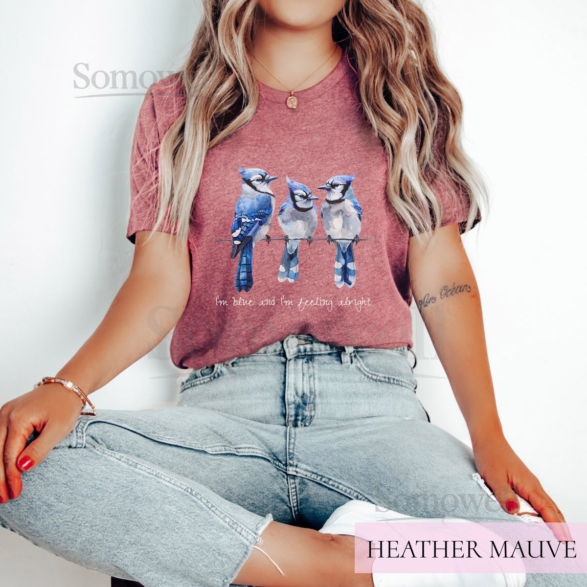 Cute Blue Jays T-Shirt I’m Blue and I’m Feeling Alright Birds Shirt Nature Lover Graphic Tee Gift for Bird Lover Cottagecore Aesthetic_250
