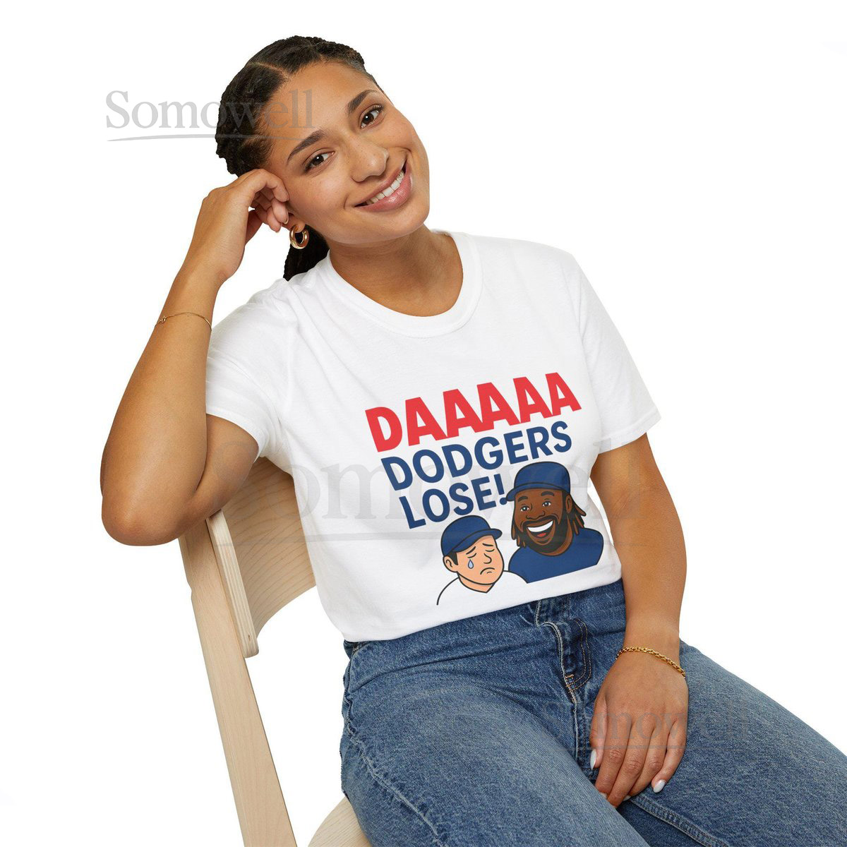 DAAAAA Dodgers Lose Comedic Sports Tee Gift for Baseball Lovers Dodgers Lose Shirt Unisex Softstyle T-Shirt_260