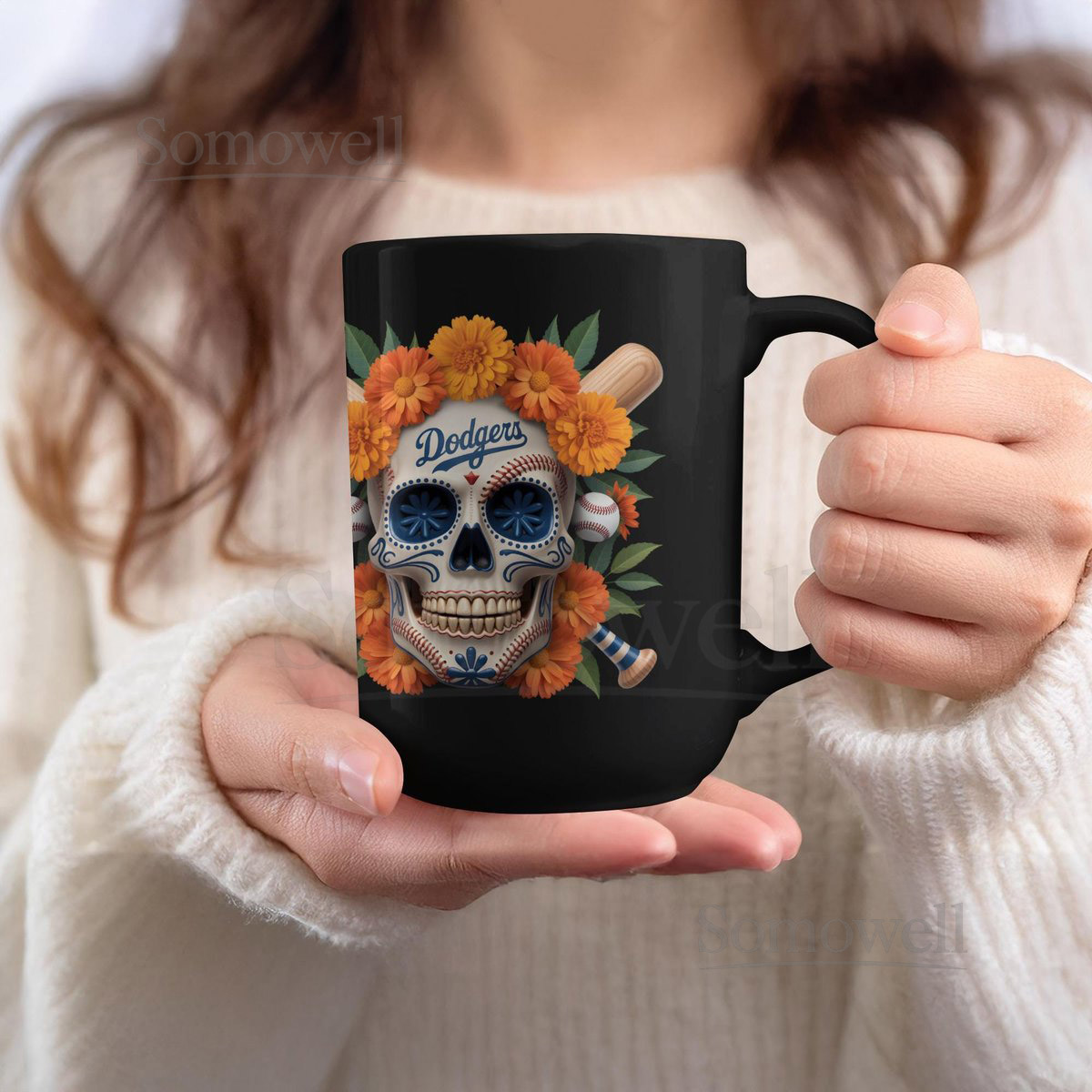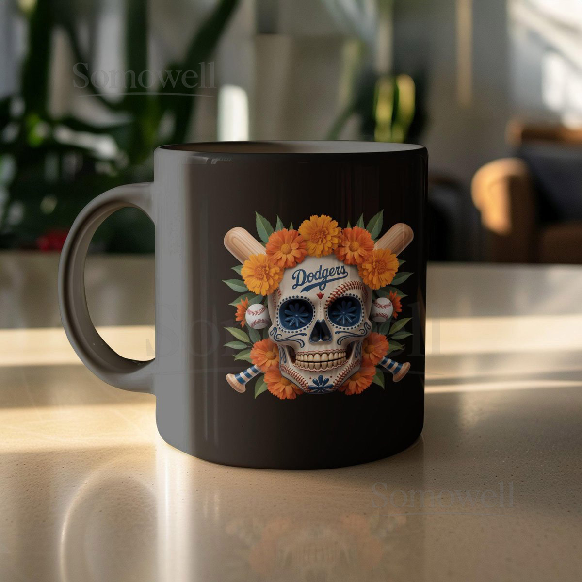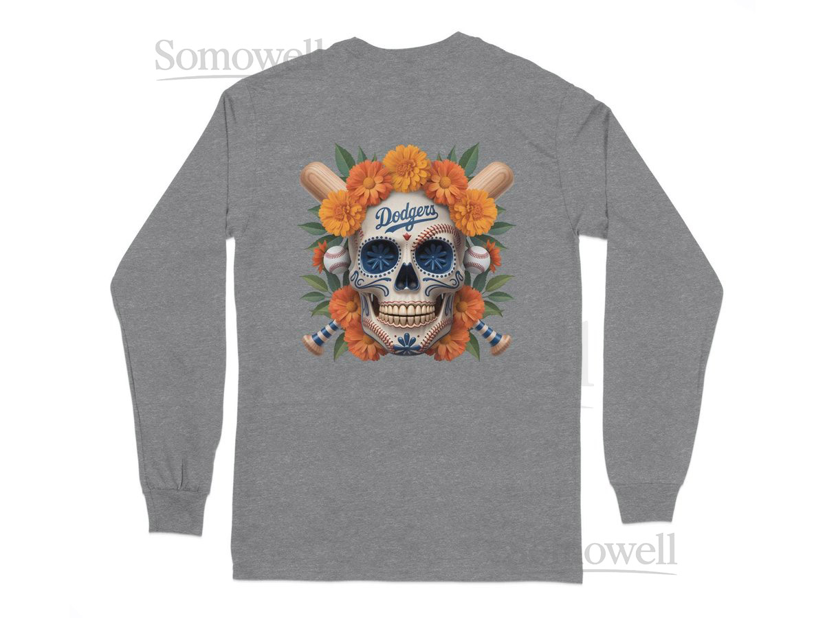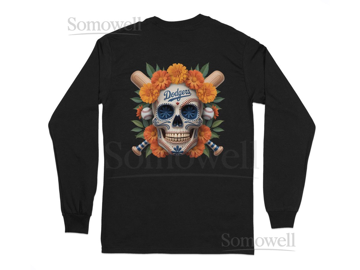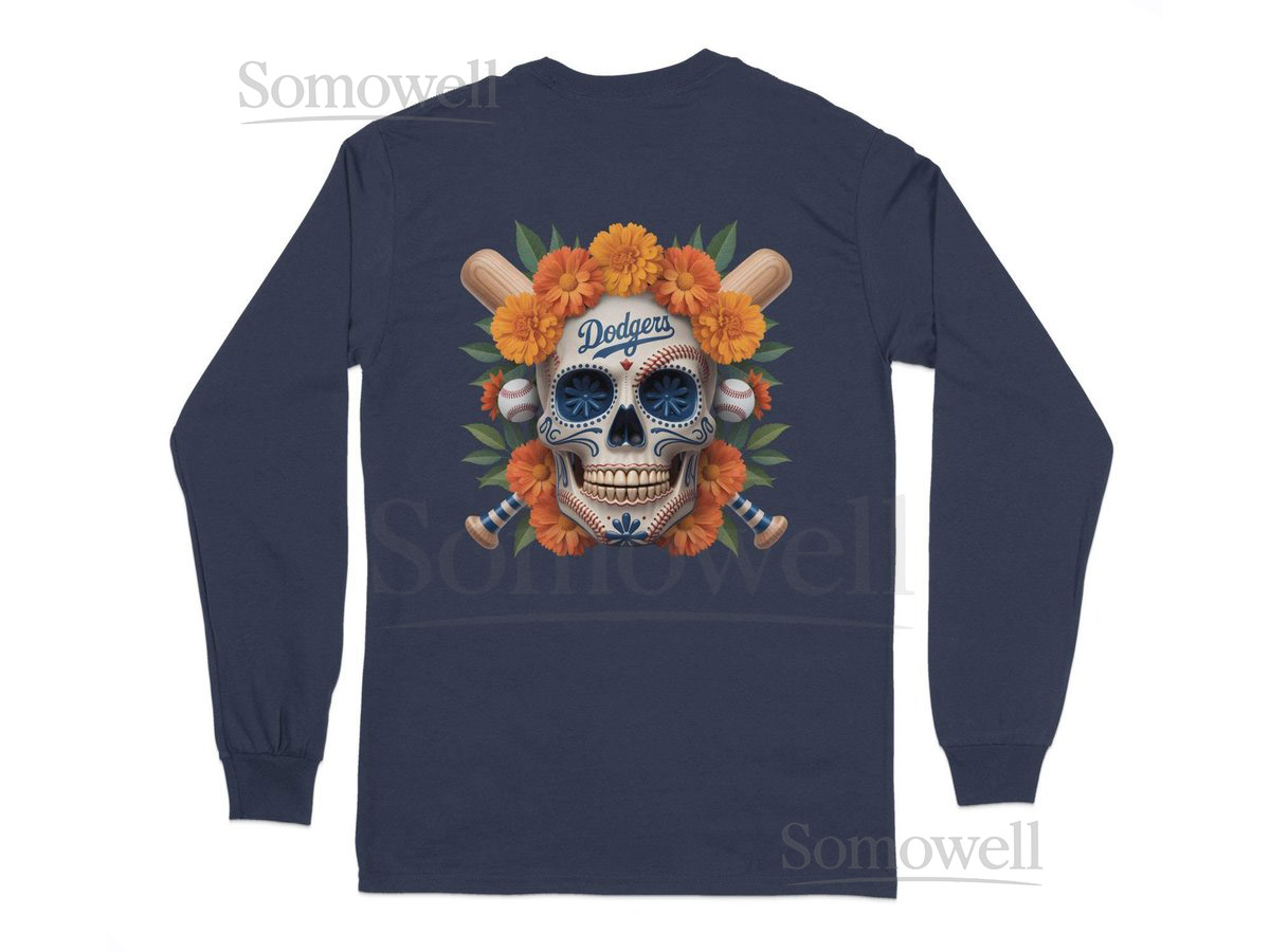 Dodgers Sugar Skull T-Shirt Day of the Dead Baseball Fan Gift Dia de los Muertos Dodgers Fan Tee Floral Skull Baseball T-Shirts_359
