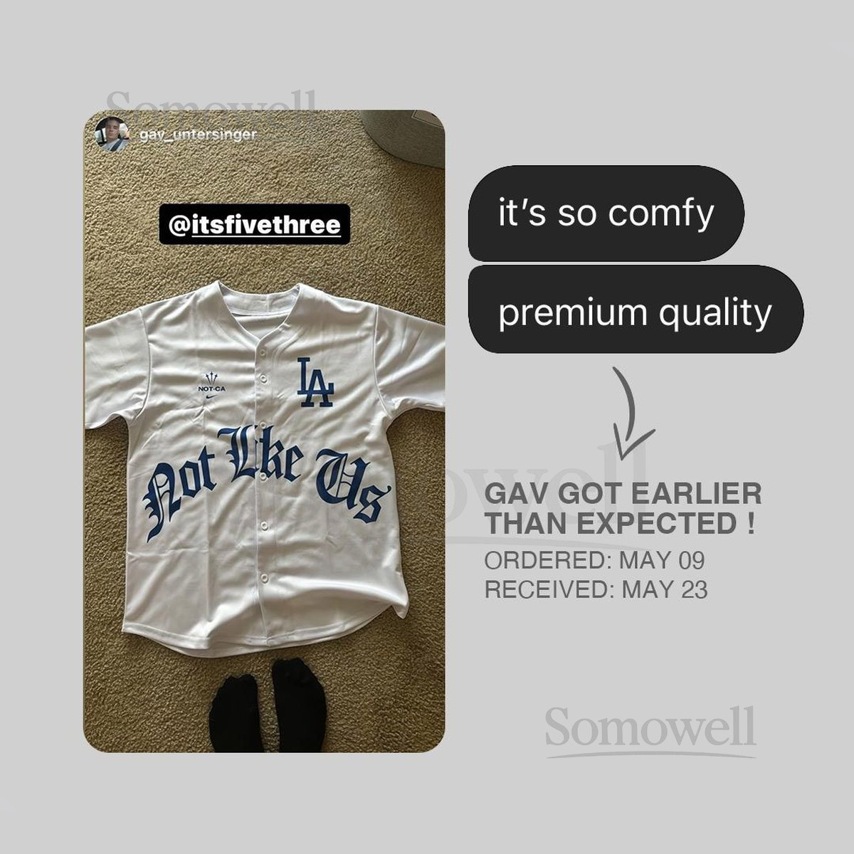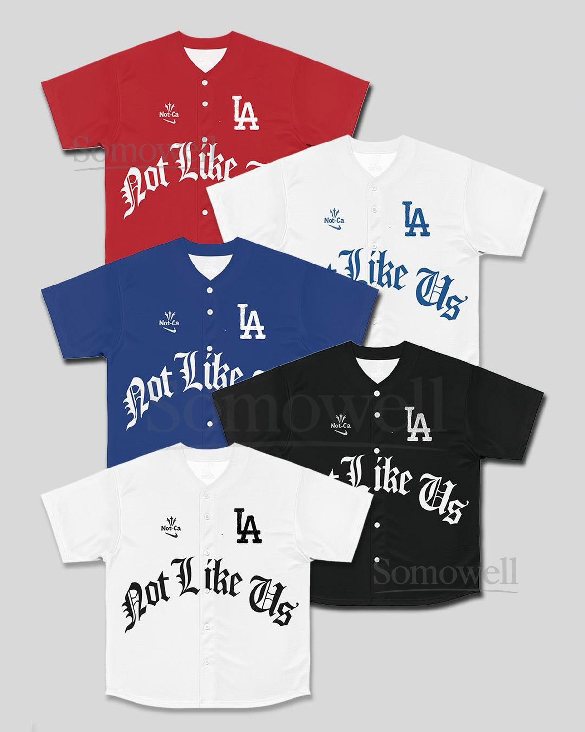 Kendrick Lamar Inspired White Blue Text ‘Not Like Us’ LA Baseball Jersey_477