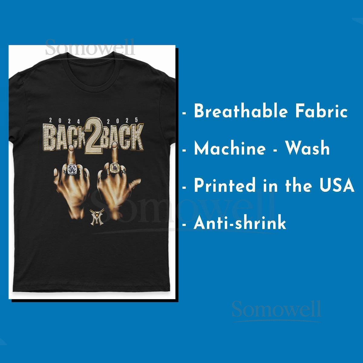 LA Baseball Ring Middle Finger Back 2 Back Champs Shirt Retro Los Angeles Baseball Tee Streetwear Style_509