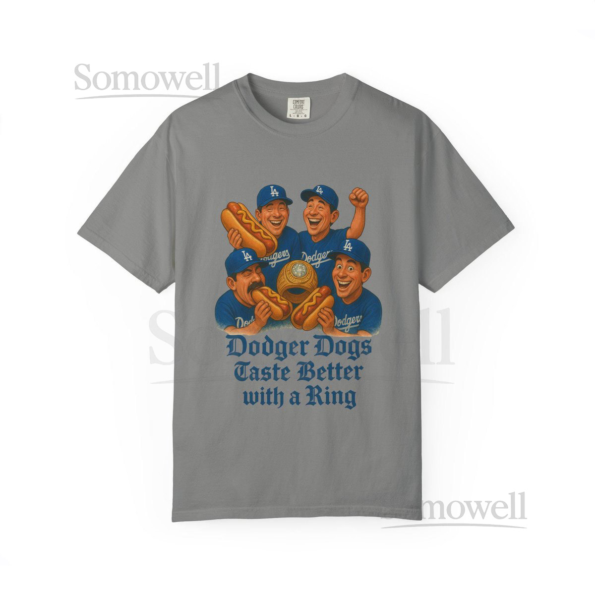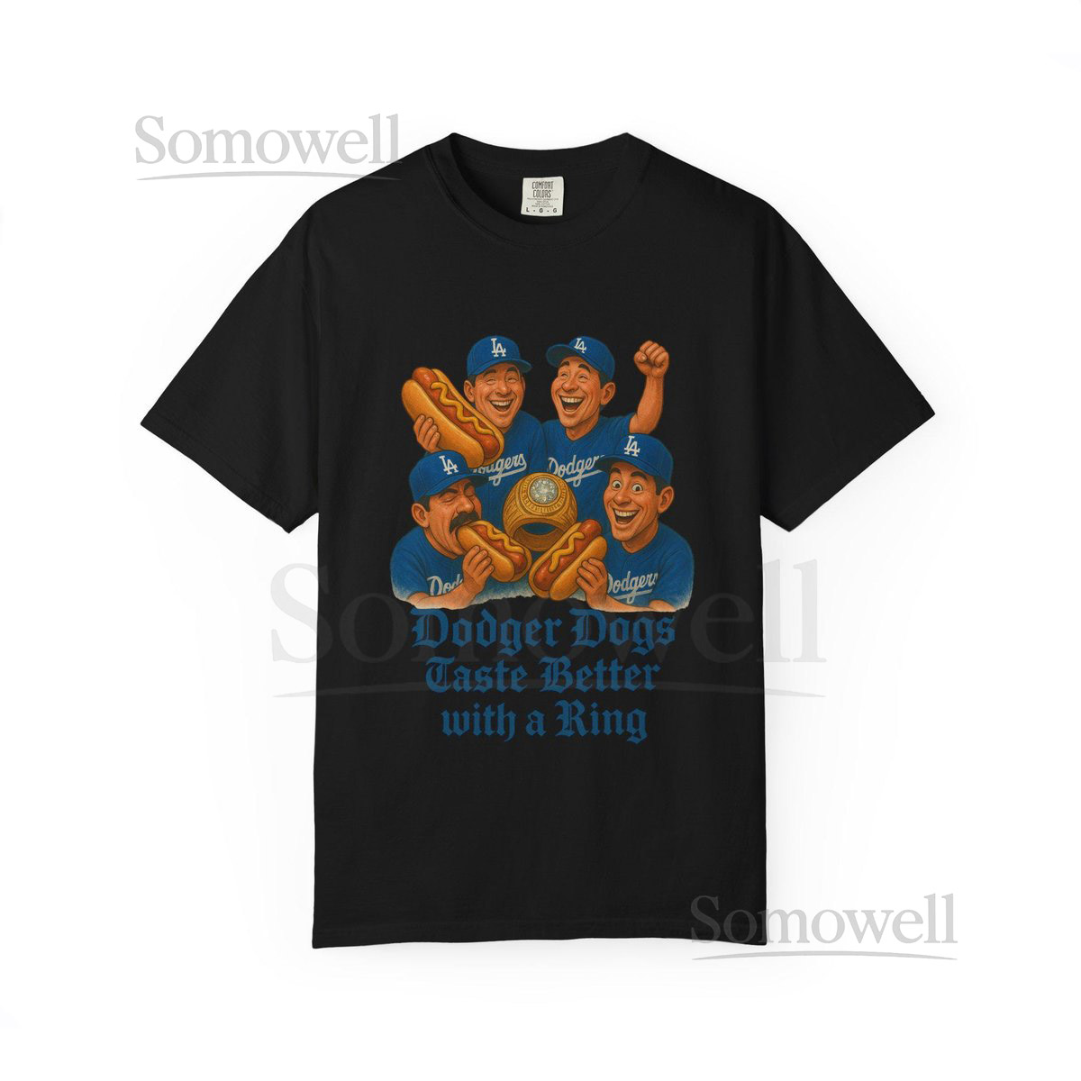 LA Dodgers Champions T-Shirt Fun Baseball Tee Dogs Taste Better With Ring_527
