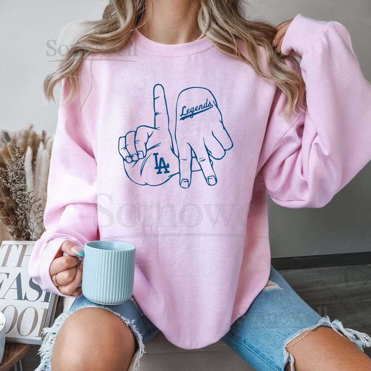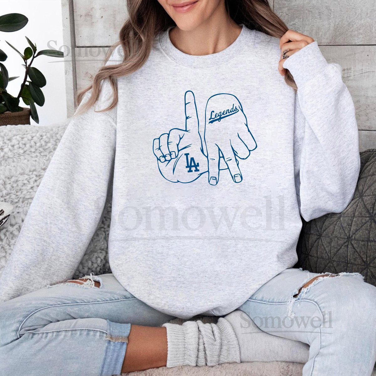 LA Hand Sign Sweatshirt Retro Baseball Fan Gift_552