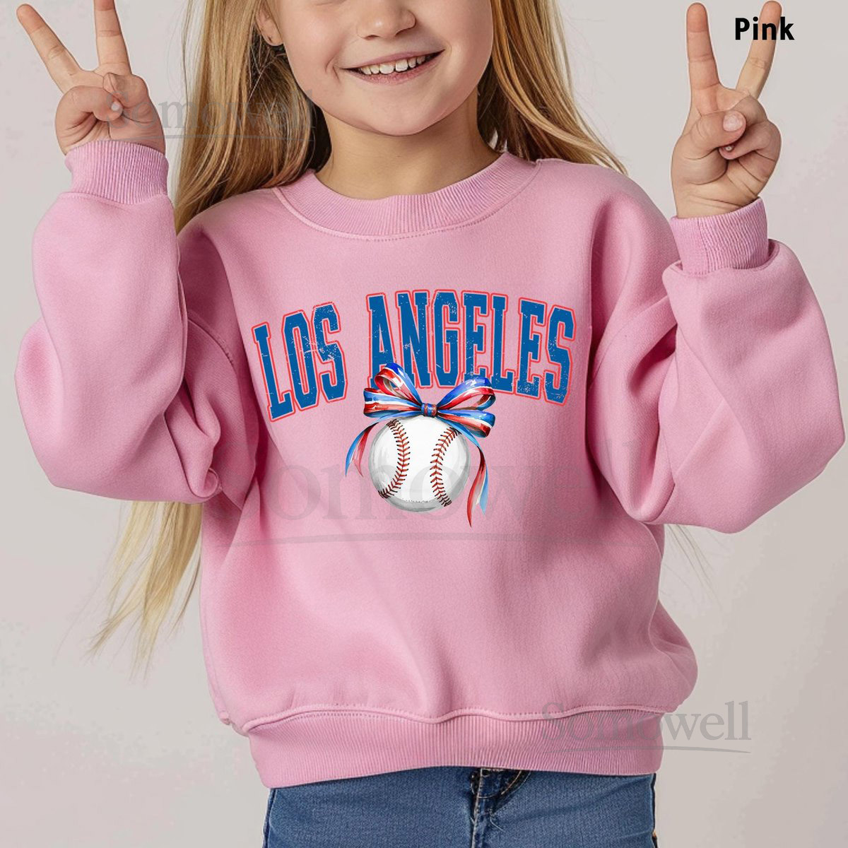 Los Angeles Baseball bow sweatshirt LA baseball fan gift Los Angeles baseball toddler shirt Los Angeles kids shirt LA game day shirt_588