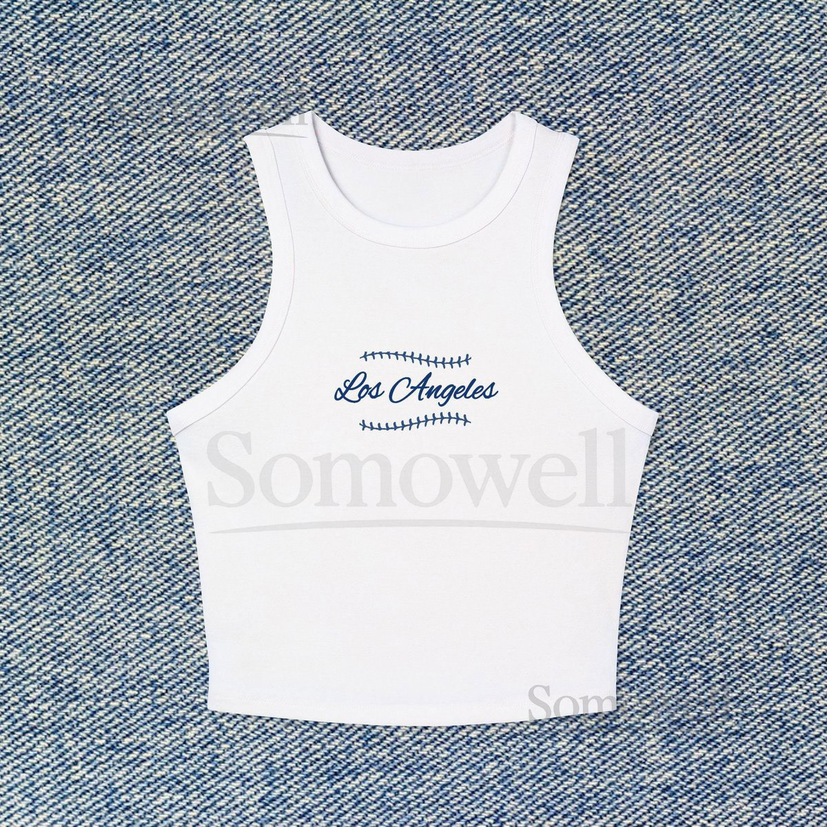 Los Angeles Baseball Ribbed Tank Top LA Womens Cropped Shirt Dodgers Player Crop Top Shohei Ohtani Mookie Betts MLB Game Day Crop Racer Tank_598