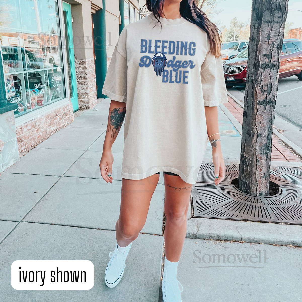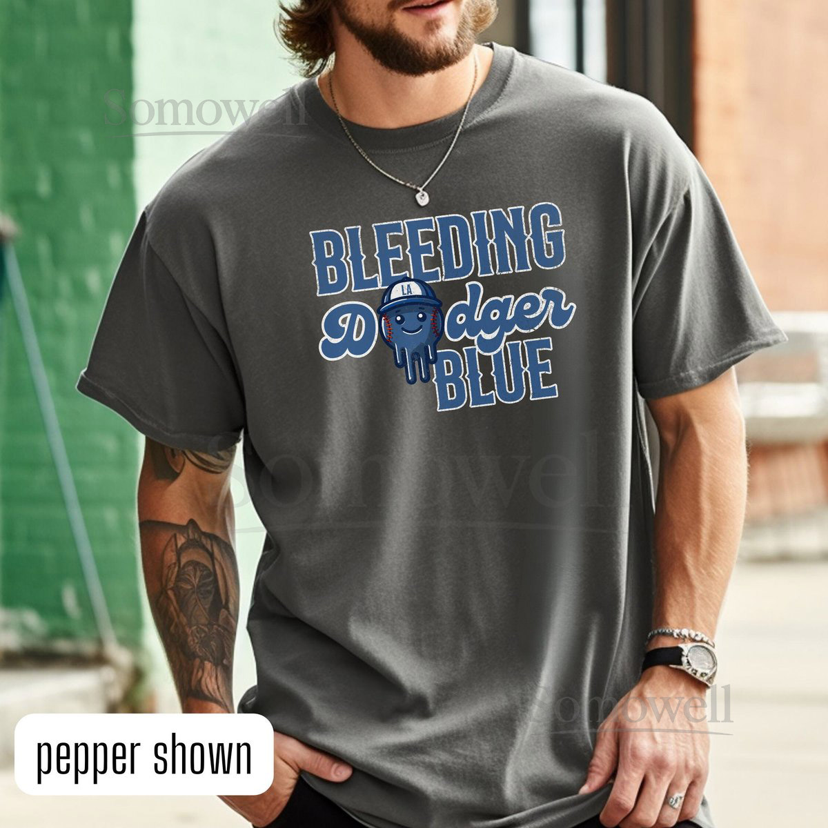 Los Angeles Baseball Shirt LA Baseball T-Shirt Dodger Blue Apparel Womens Crewneck Bleeding Dodger Blue Gift_601