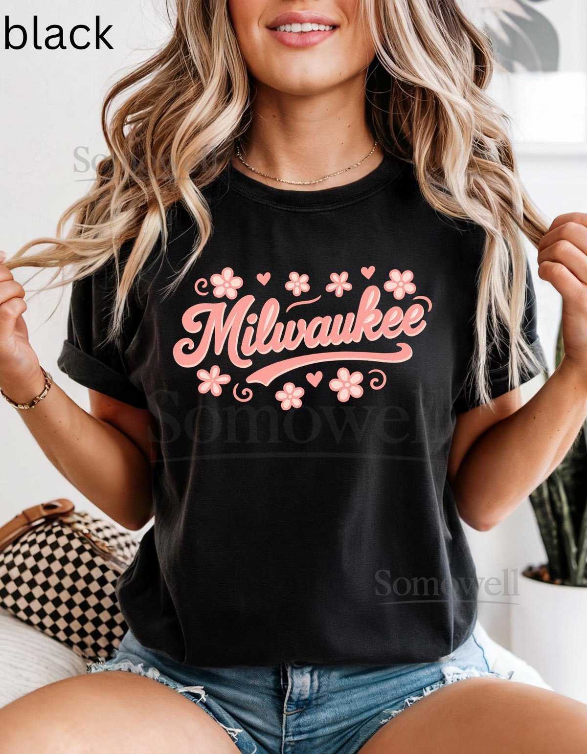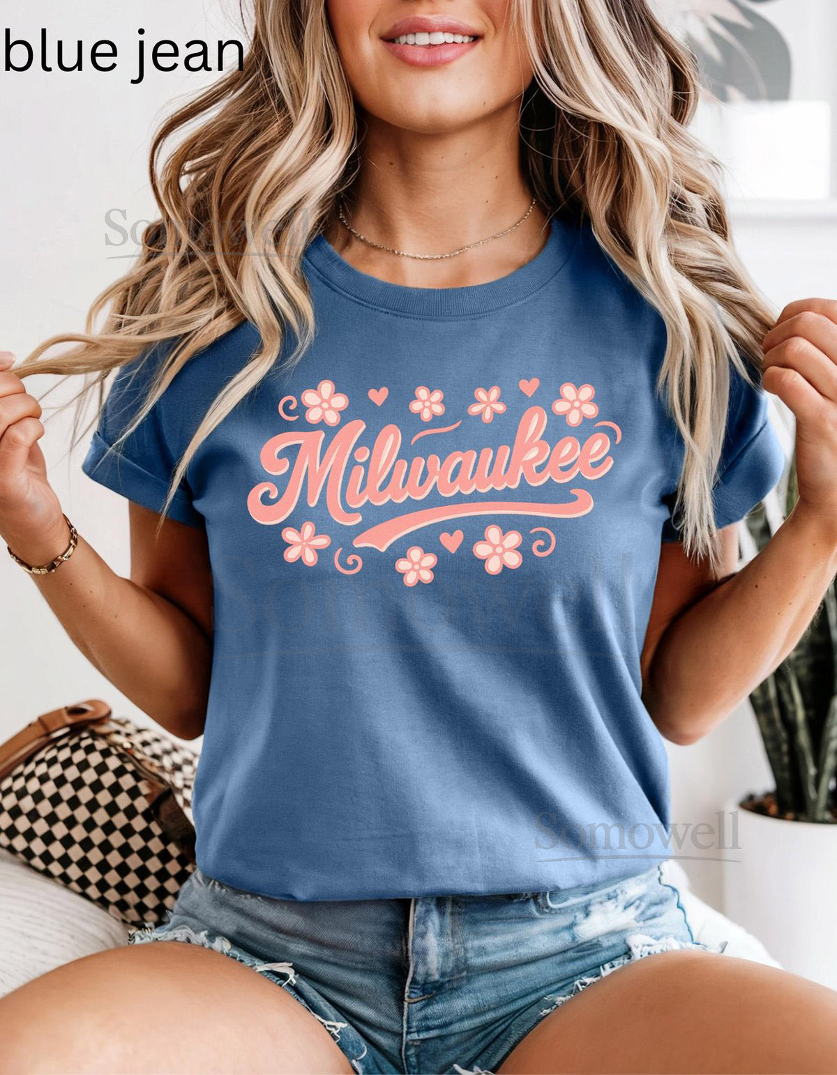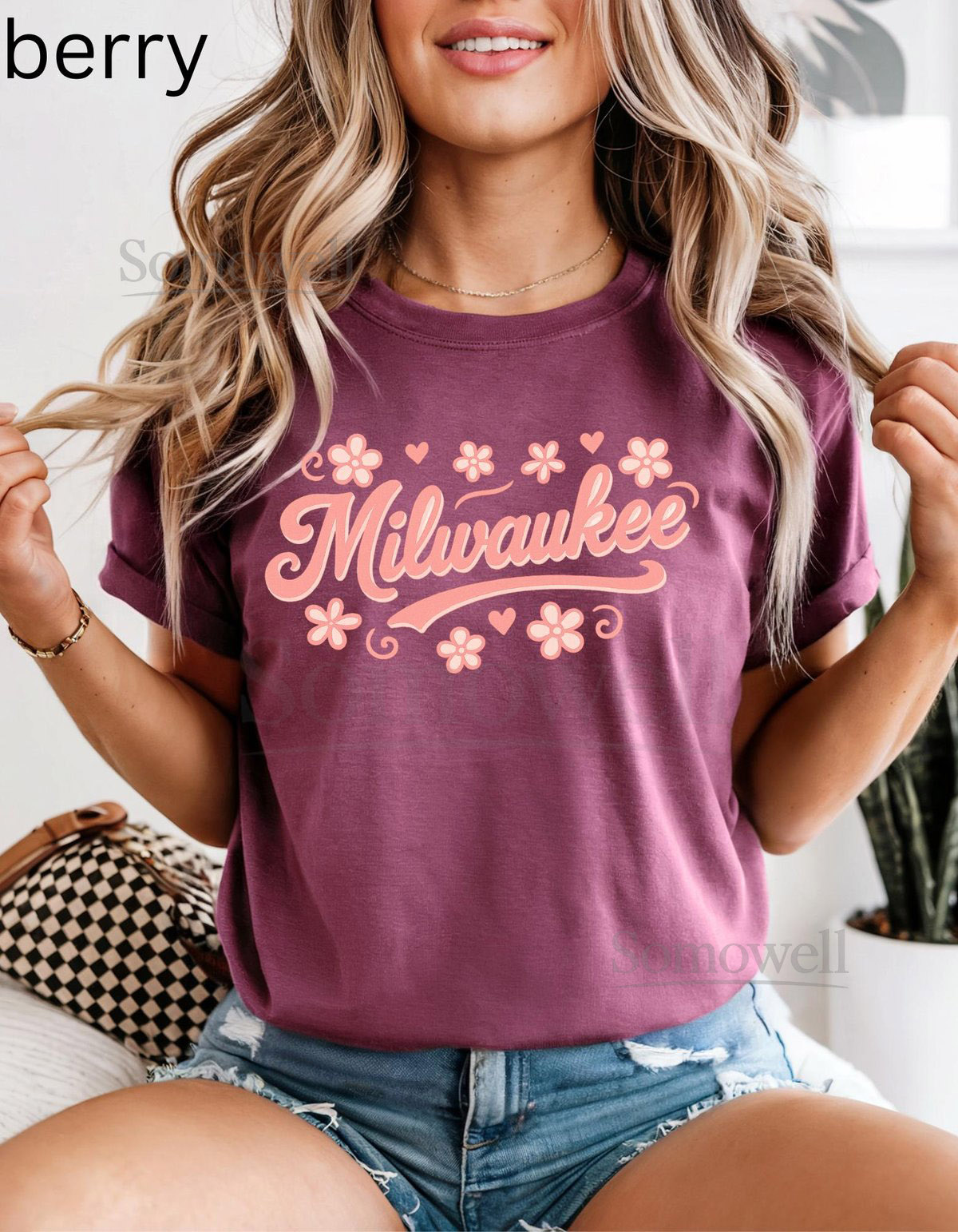 Milwaukee Retro Flower Shirt Comfort Colors Cotton Graphic Tee Cute Wisconsin T-Shirt Gift Milwaukee Baseball Shirt_692