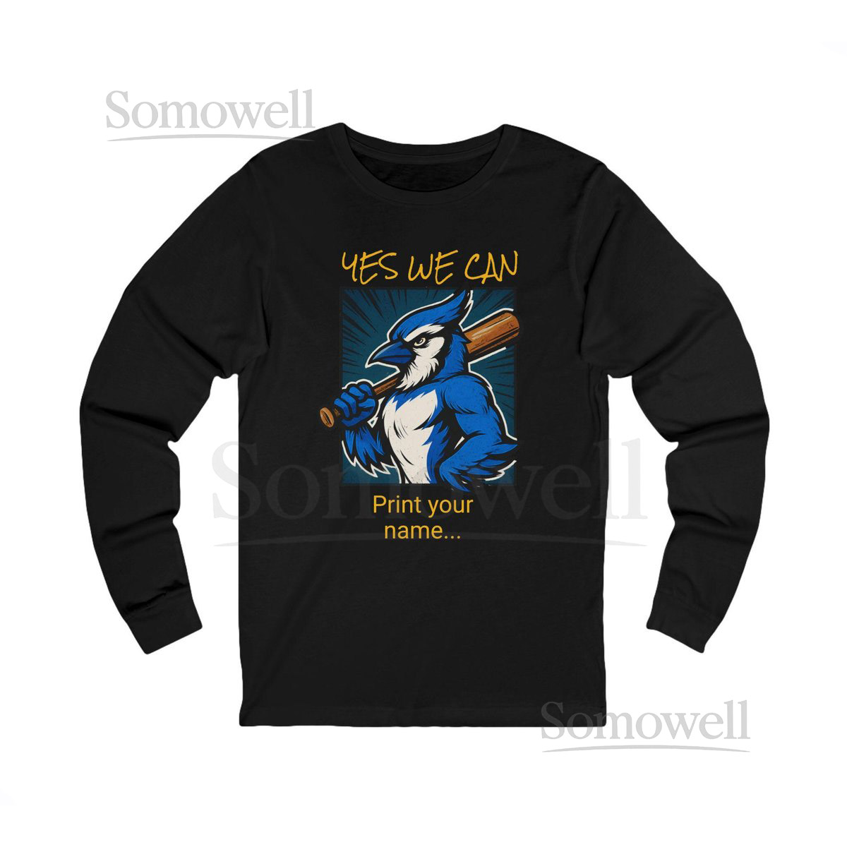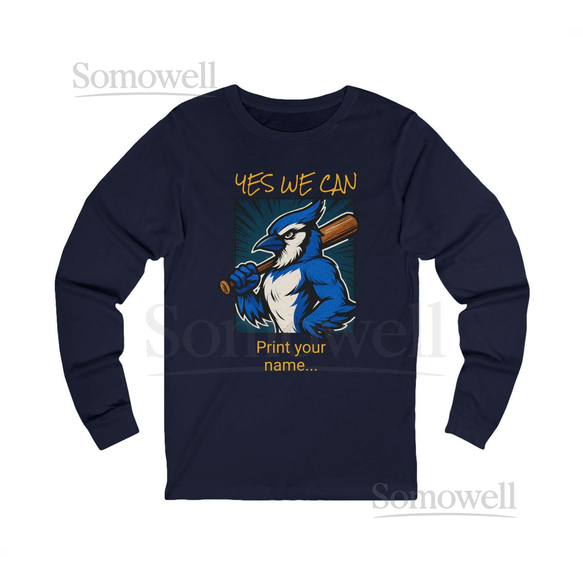 Motivational Long Sleeve Tee Yes We Can Blue Jay Shirt for Sports Fans Casual Wear Gifts Everyday Inspiration Team Spirit_709