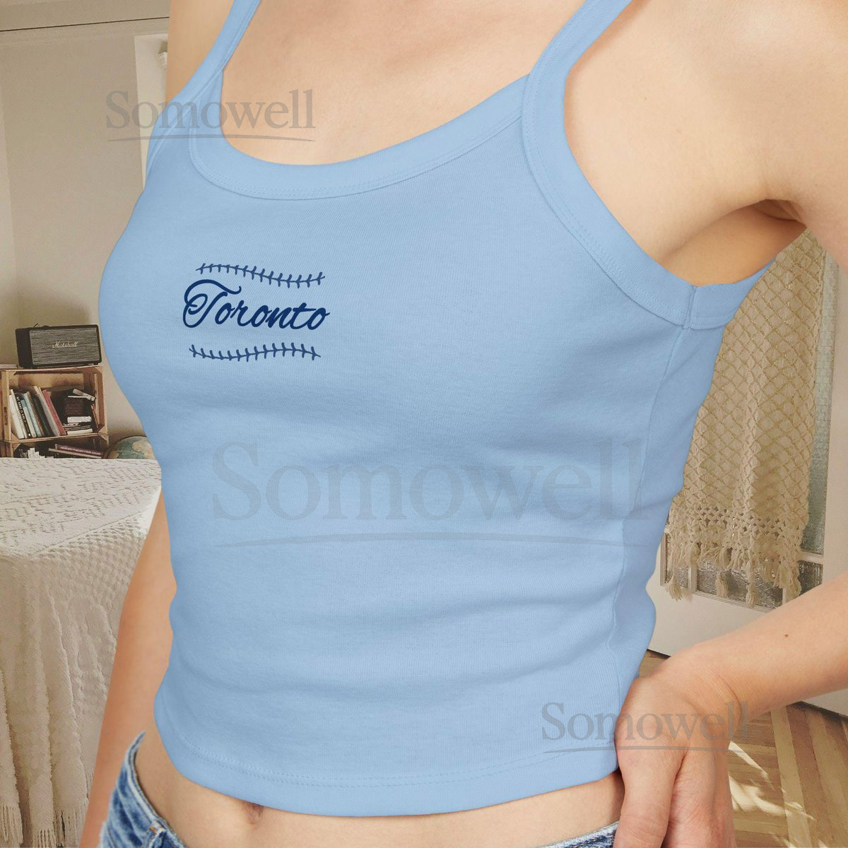 Toronto Baseball Cropped Tank Top Womens Spaghetti Strap Shirt Blue Jays Player Top Kevin Gausman Max Scherzer José Berríos MLB Game Outfit_831