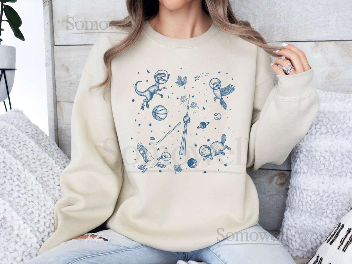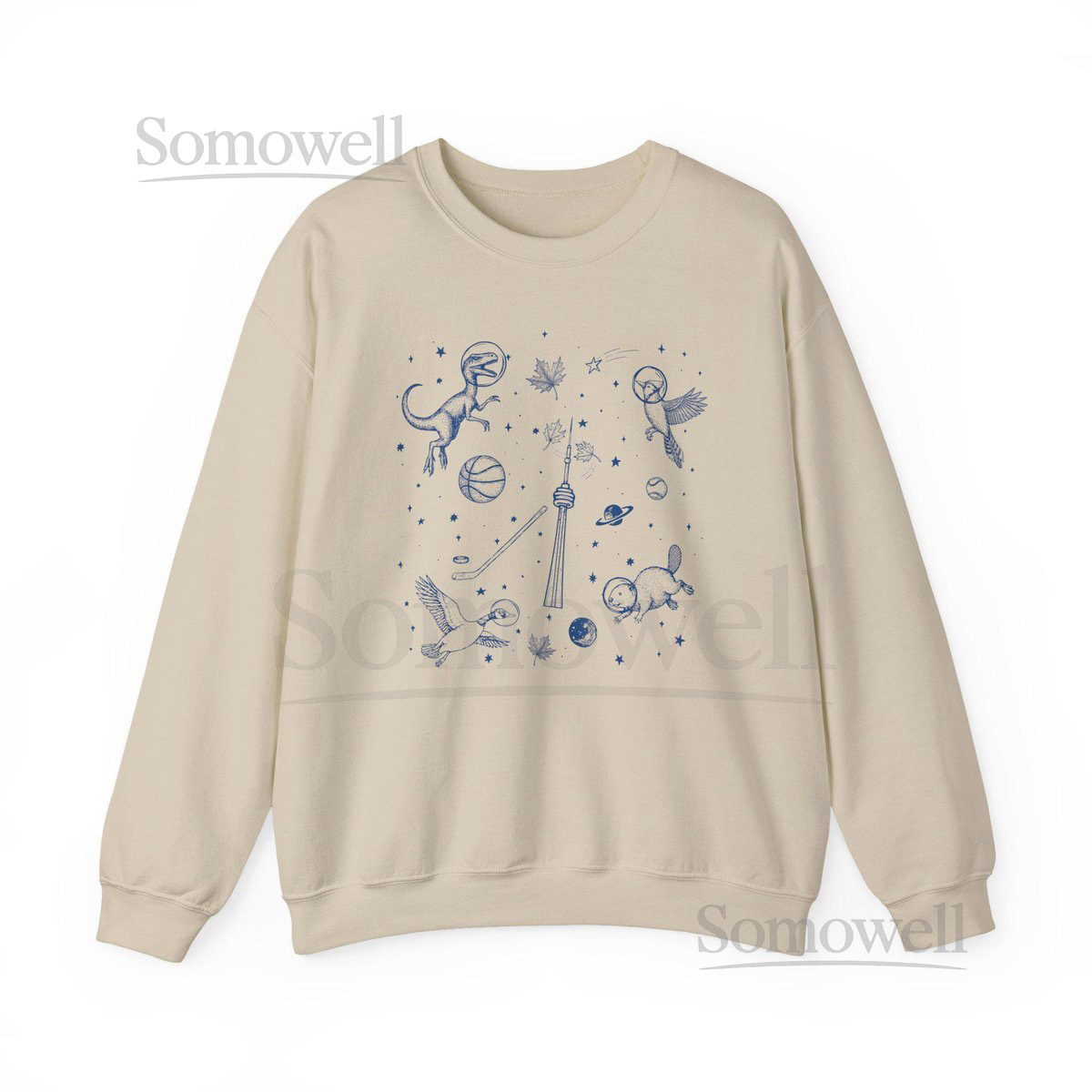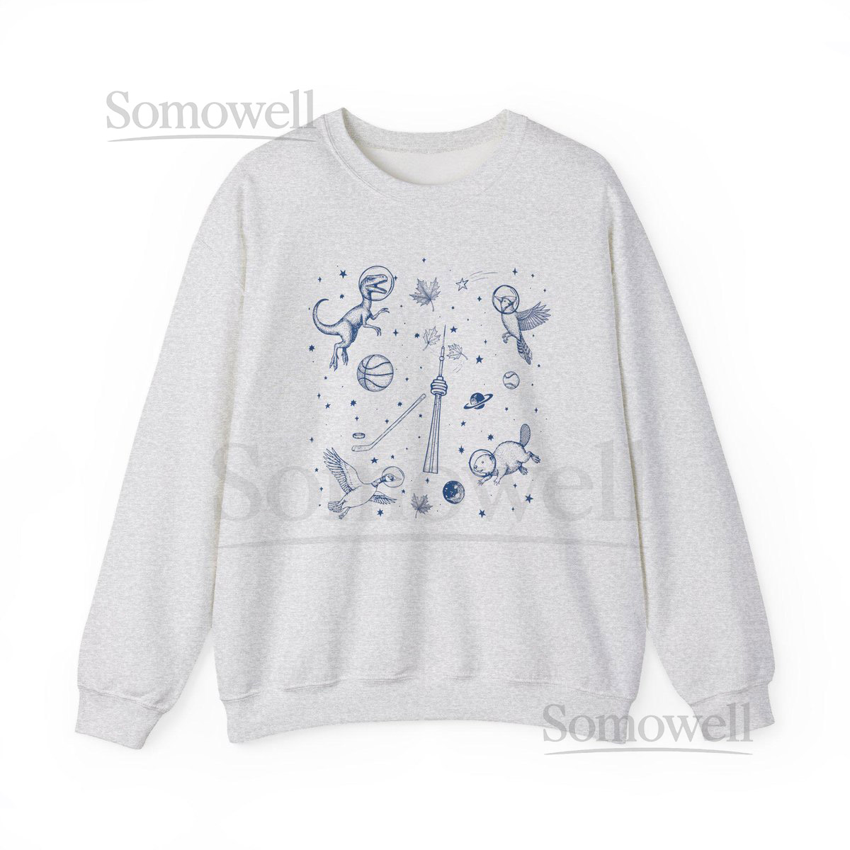Toronto in Space Sweatshirt Raptor Blue Jay Maple Leaf CN Tower Floating in Space Trendy Astronaut Design Cute Gift for Her_933