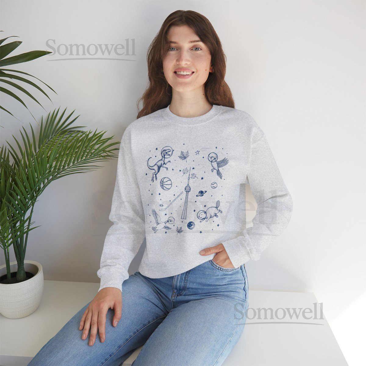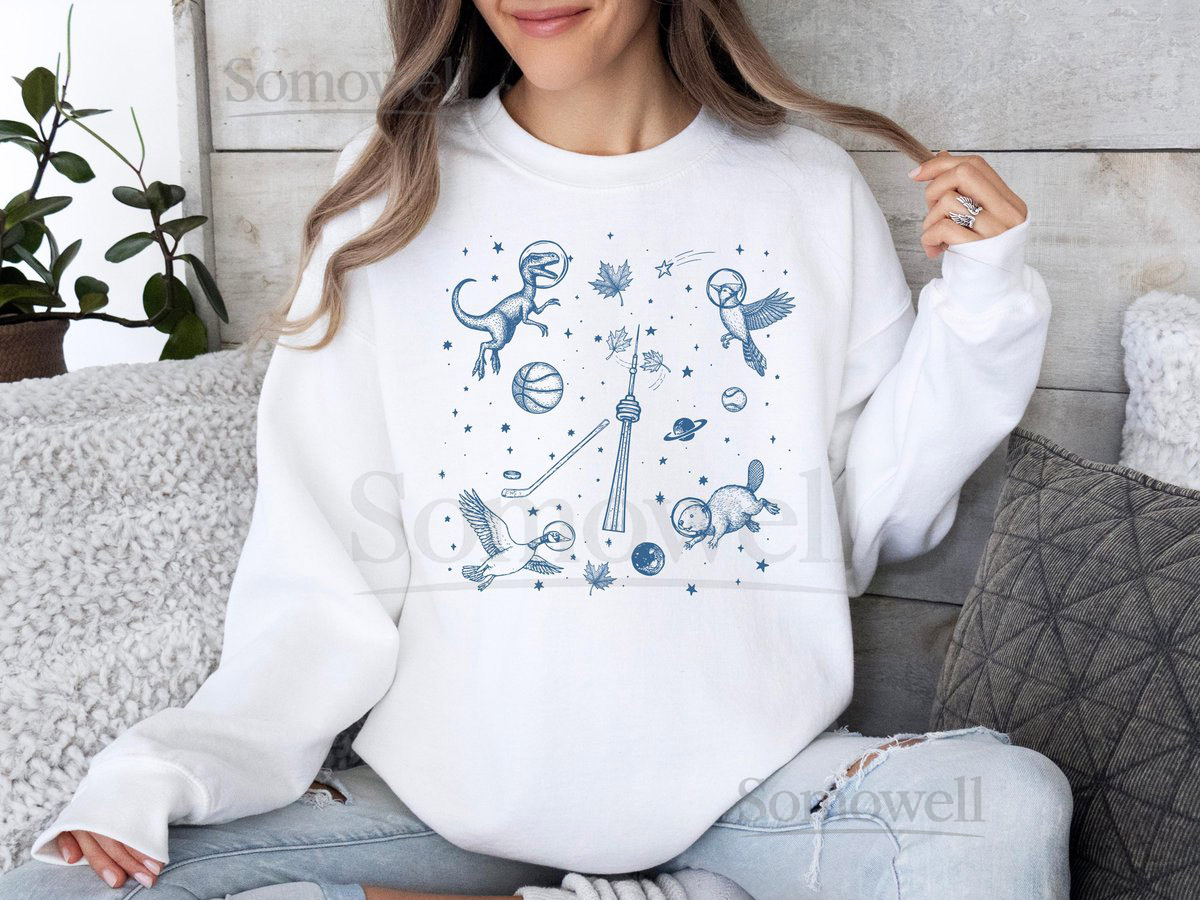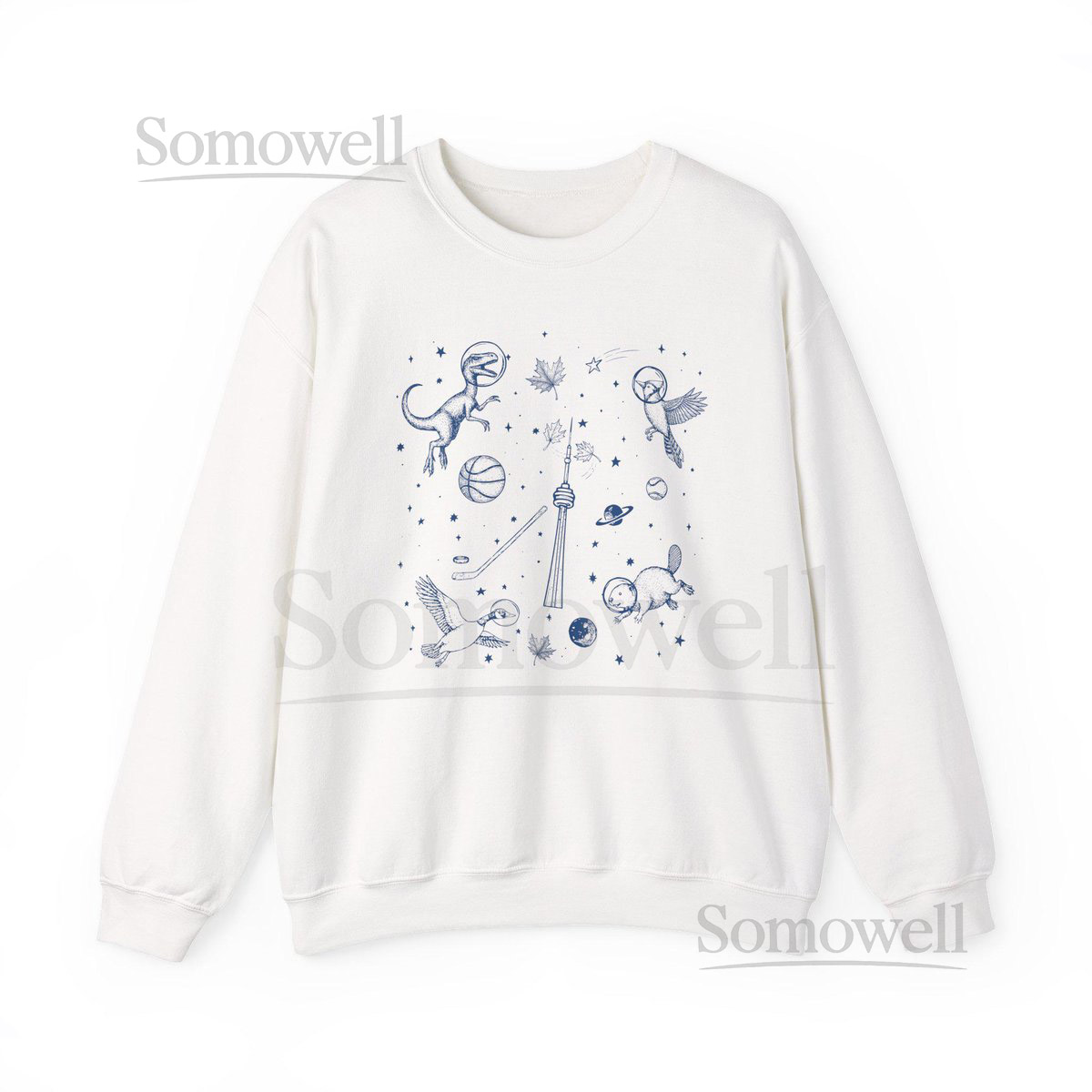Toronto in Space Sweatshirt Raptor Blue Jay Maple Leaf CN Tower Floating in Space Trendy Astronaut Design Cute Gift for Her_933