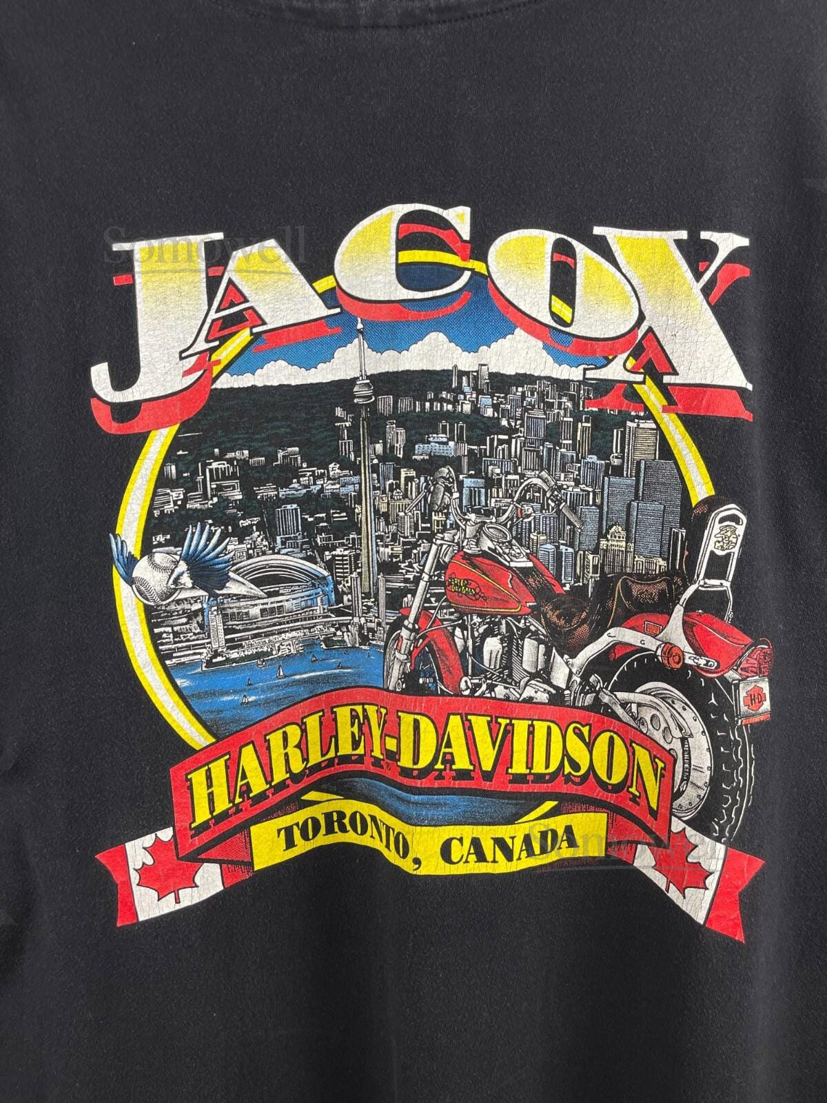 Vintage 90s Harley Davidson Toronto Blue Jays Canada Black Tee Size 2XL_1024