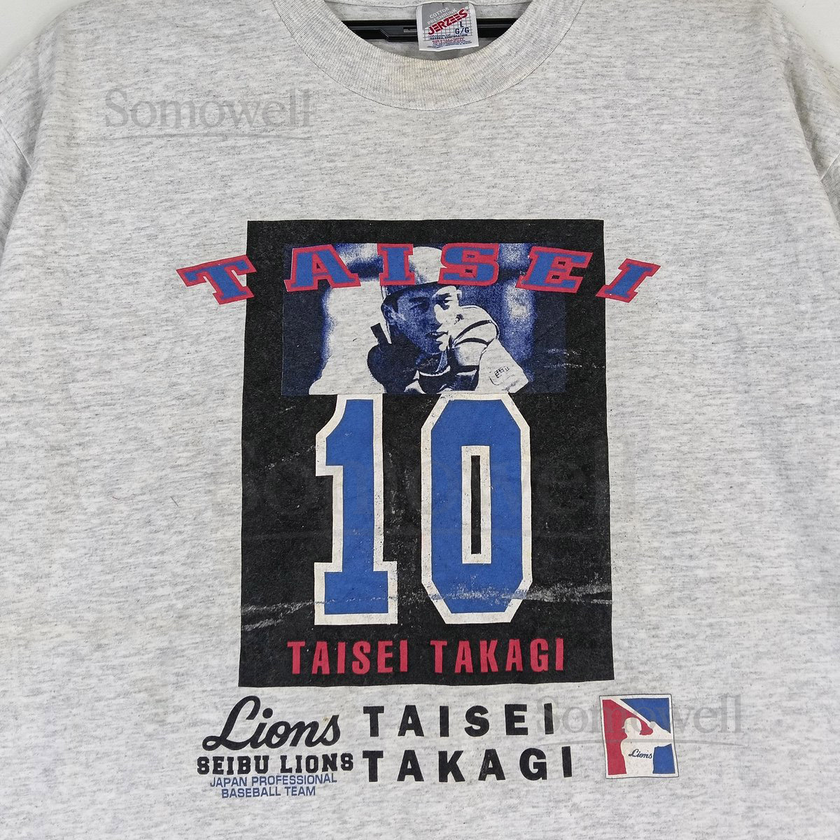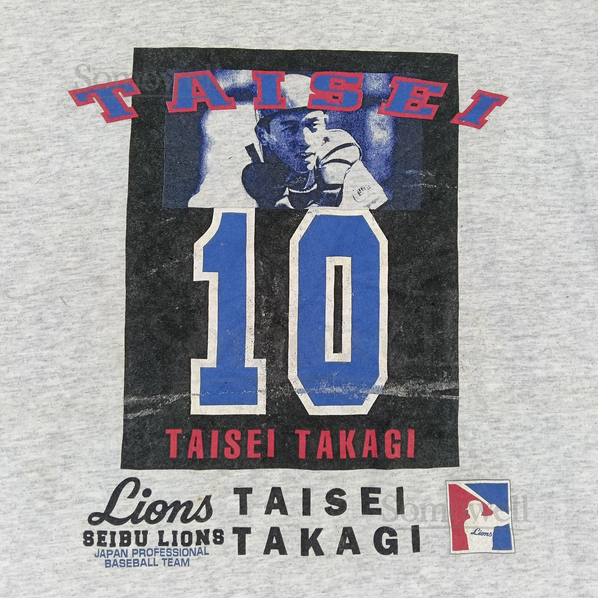 Vintage 90’s Taisei Takagi Seibu Lions Japanese Baseball Team Gray Large T Shirt Baseball League Baseball Champion Shirt Size L_1012